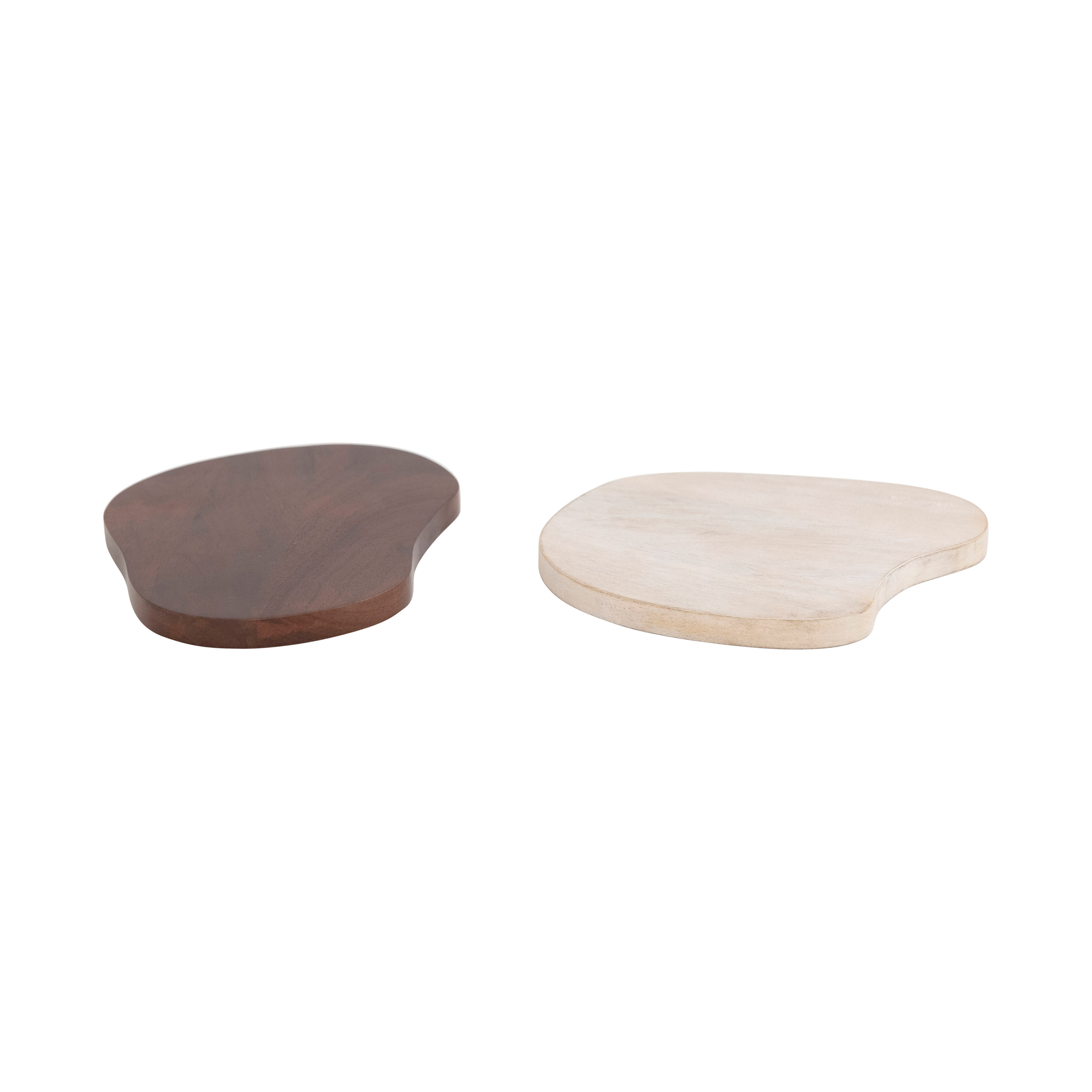 Catalog Name: 12"L x 8"W & 9-3/4"L x 9-1/4"W Mango Wood Organic Shaped Cheese/Serving Boards, Walnut & Beech Finish, Set of 2