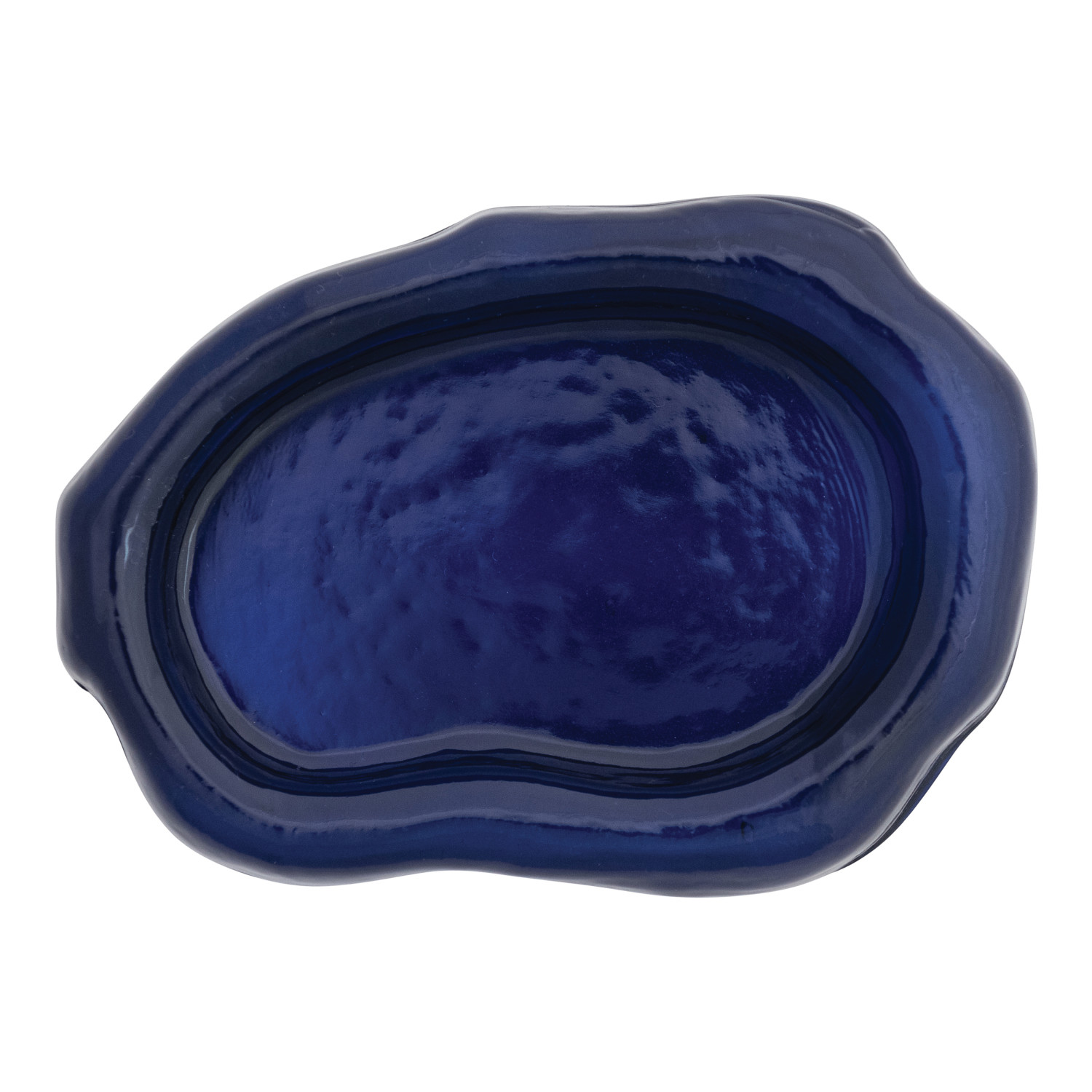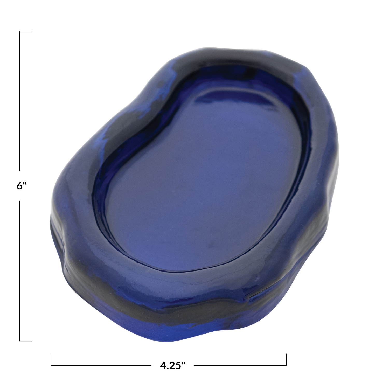 Catalog Name: 6"L x 4-1/4"W Pressed Recycled Glass Organic Shaped Dish, Blue