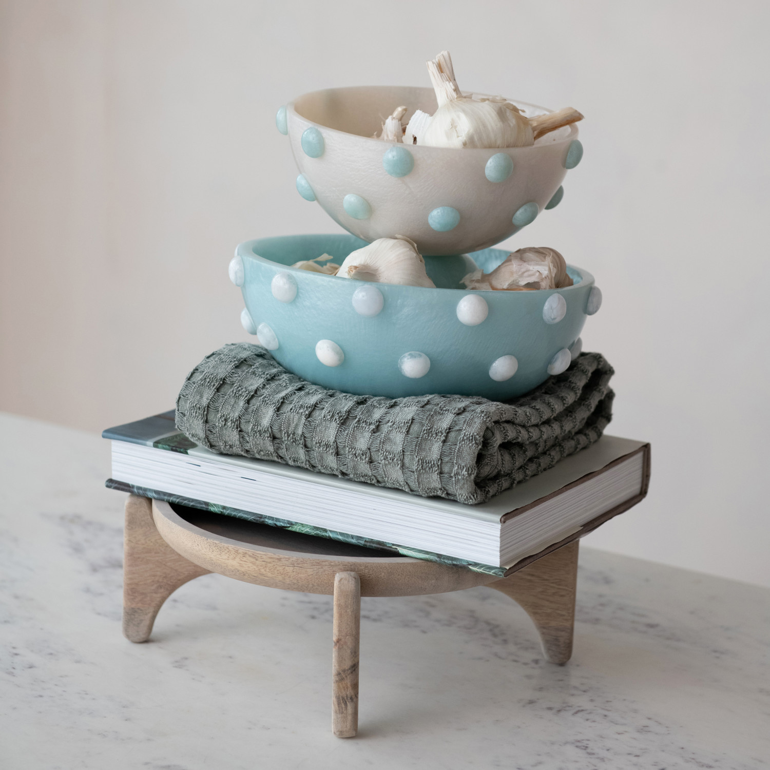 Catalog Name: 9-1/2" Round x 3-1/2"H Marbled Resin Hobnail Bowl, Blue & White