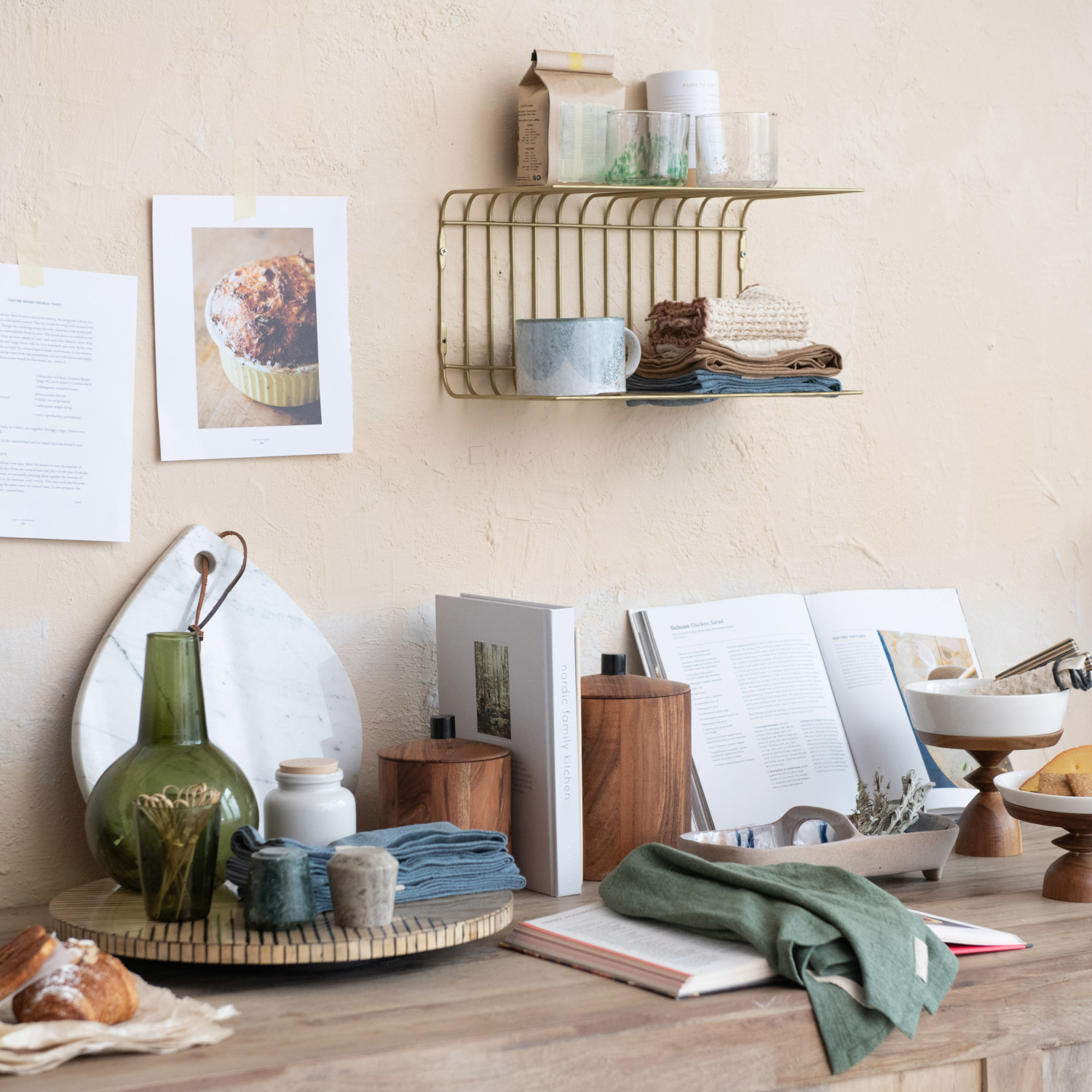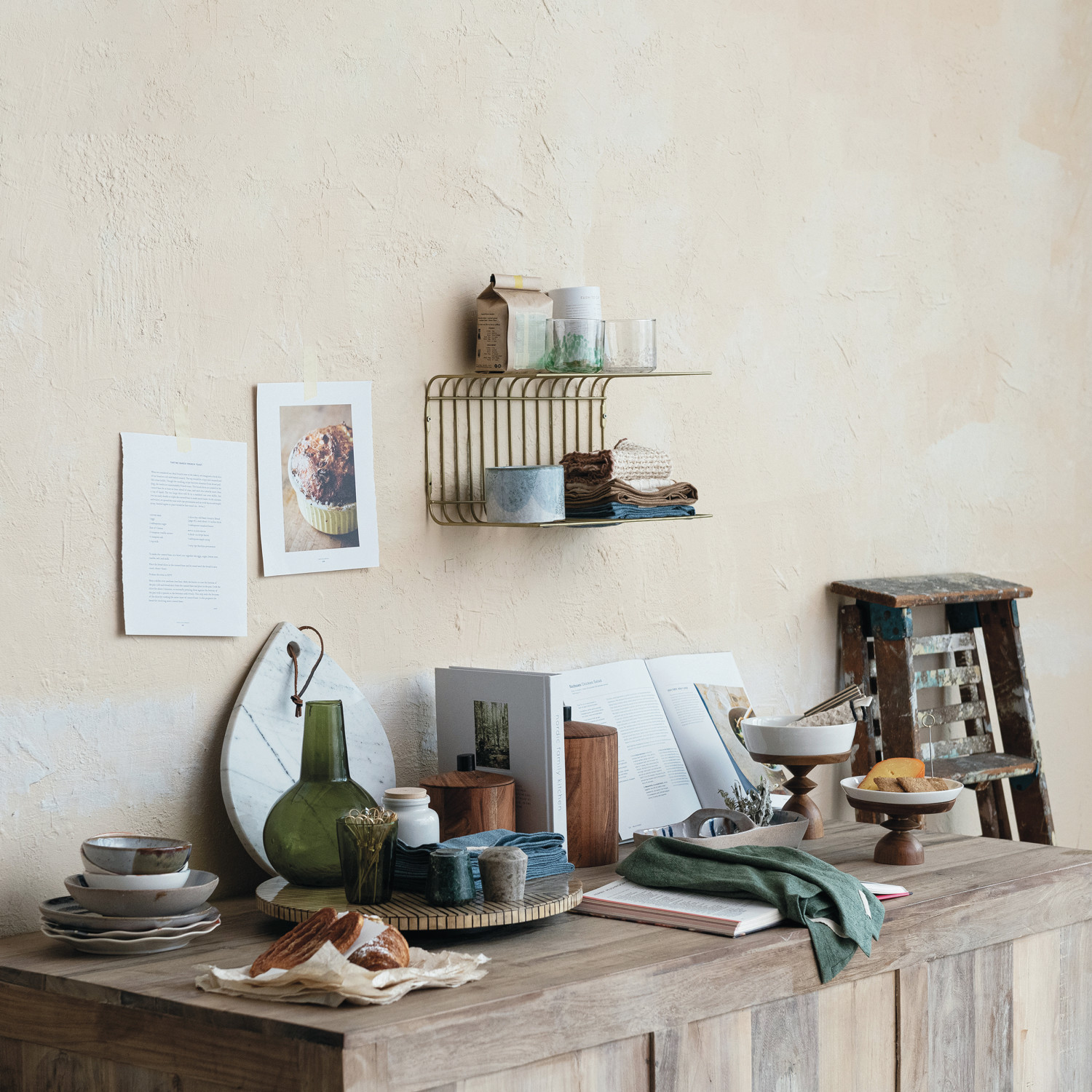 Metal Wire Wall Shelf, Antique Brass Finish