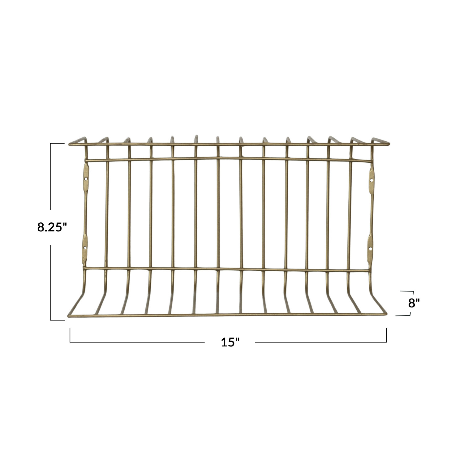 Catalog Name: 15"W x 8"D x 8-1/4"H Metal Wire Wall Shelf, Antique Brass Finish