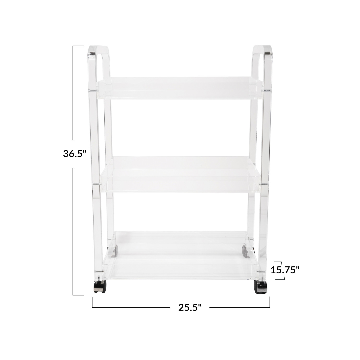 Catalog Name: 25-1/2"W x 15-3/4"D x 36-1/2"H Clear Acrylic 3-Tier Bar Cart on Casters, KD, Truck Ship