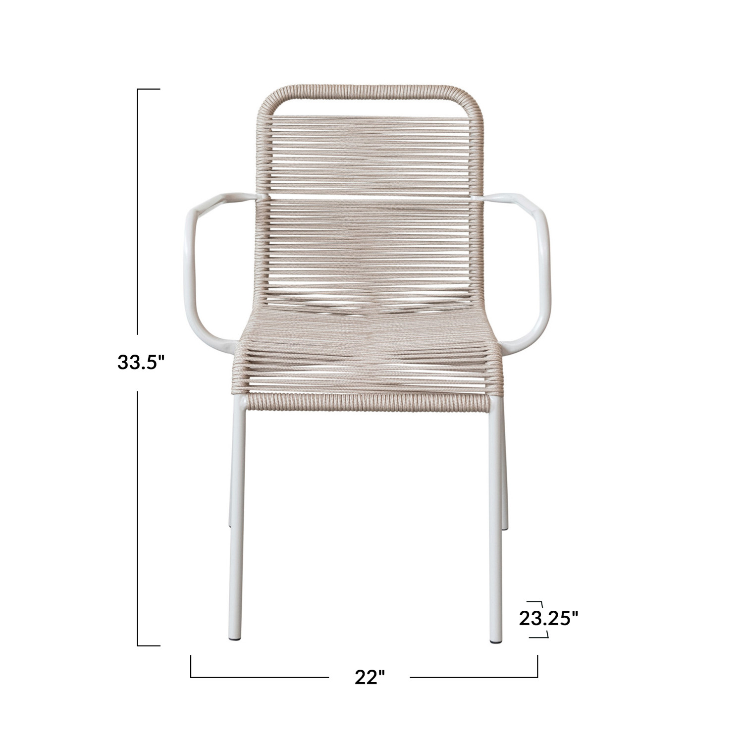 Catalog Name: 22"W x 23-1/4"D x 33-1/2"H Hand-Woven Rope Indoor/Outdoor Chair w/ White Metal Powder Coated Frame, Natural, Truck Ship