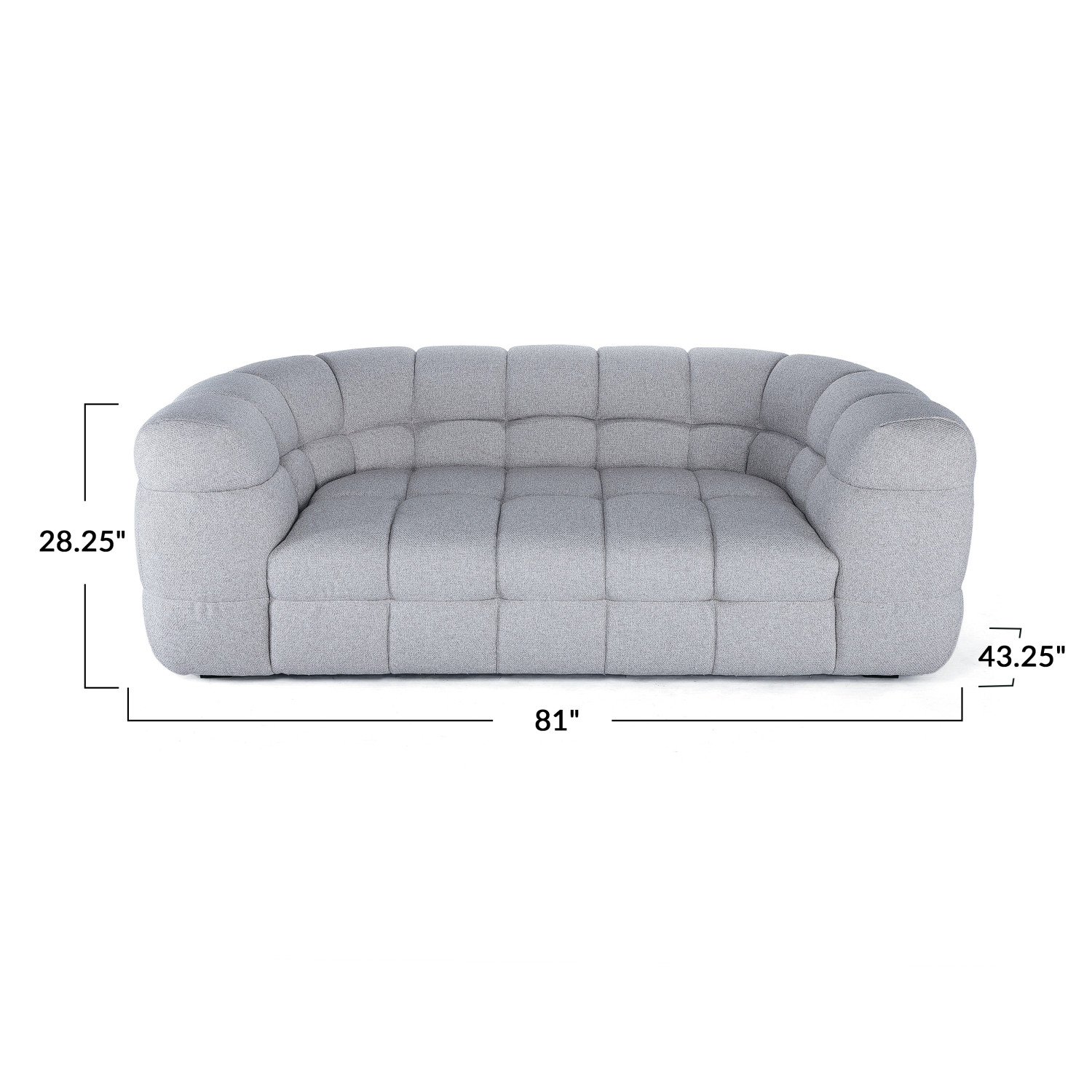 Catalog Name: 81"W x 43-1/4"D x 28-1/4"H Fabric Upholstered Tufted Curved Sofa, Grey Melange, Truck Ship