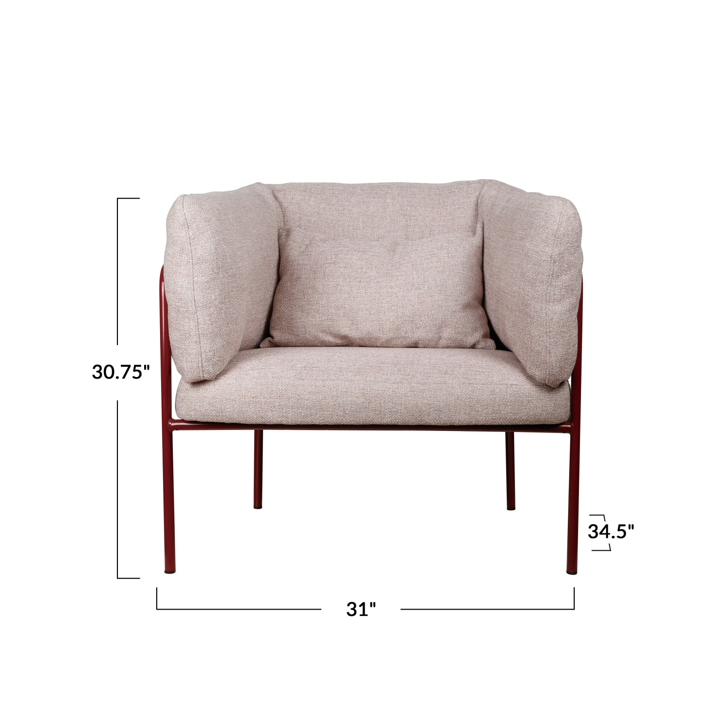 Catalog Name: 31"W x 34-1/2"D x 30-3/4"H Cotton Slub Fabric Upholstered Chair w/ Powder Coated Metal Legs & Lumbar Pillow, Burgundy & Natural, Truck Ship