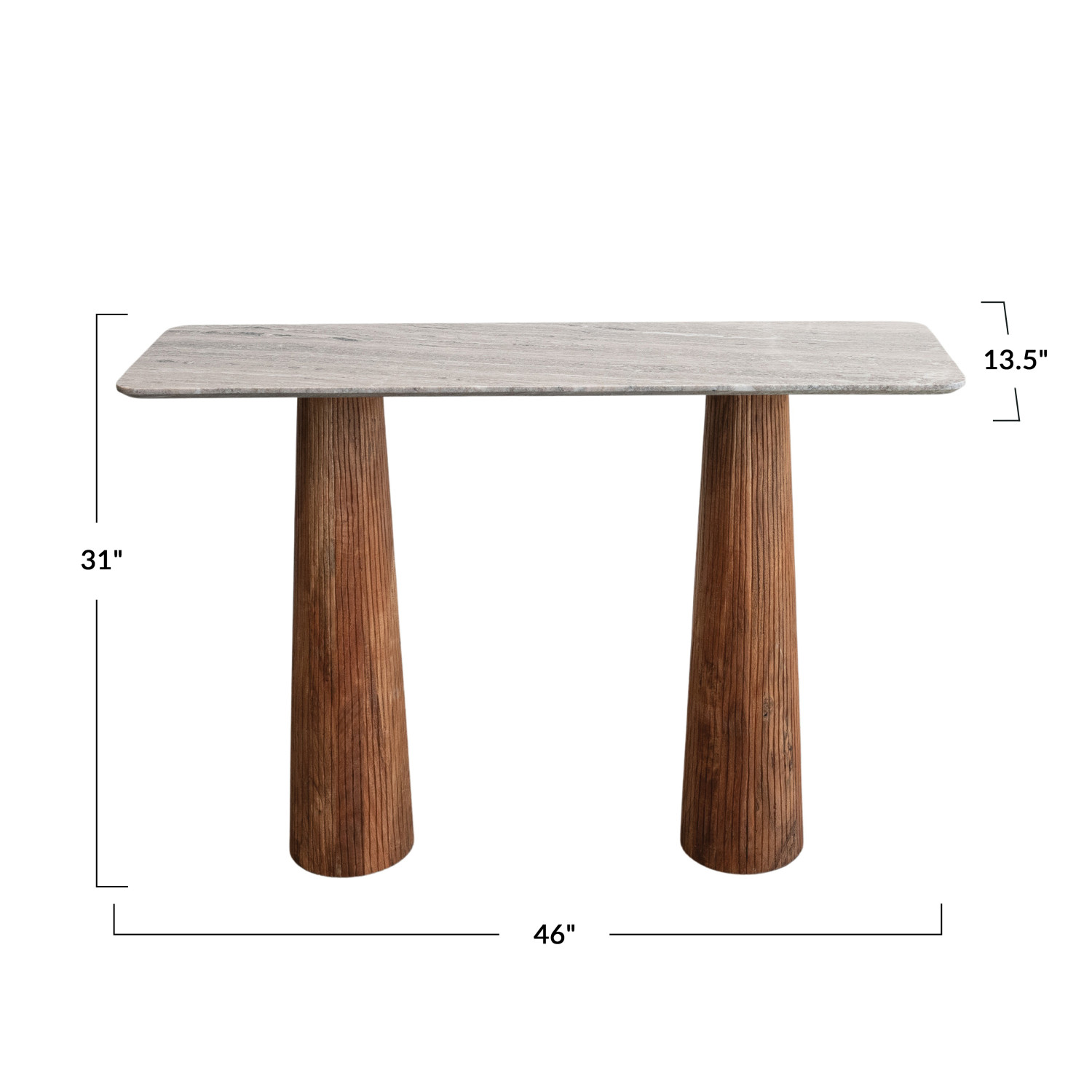 Marble Console Table w/ Carved Tapered Acacia Wood Legs, KD, Truck Ship