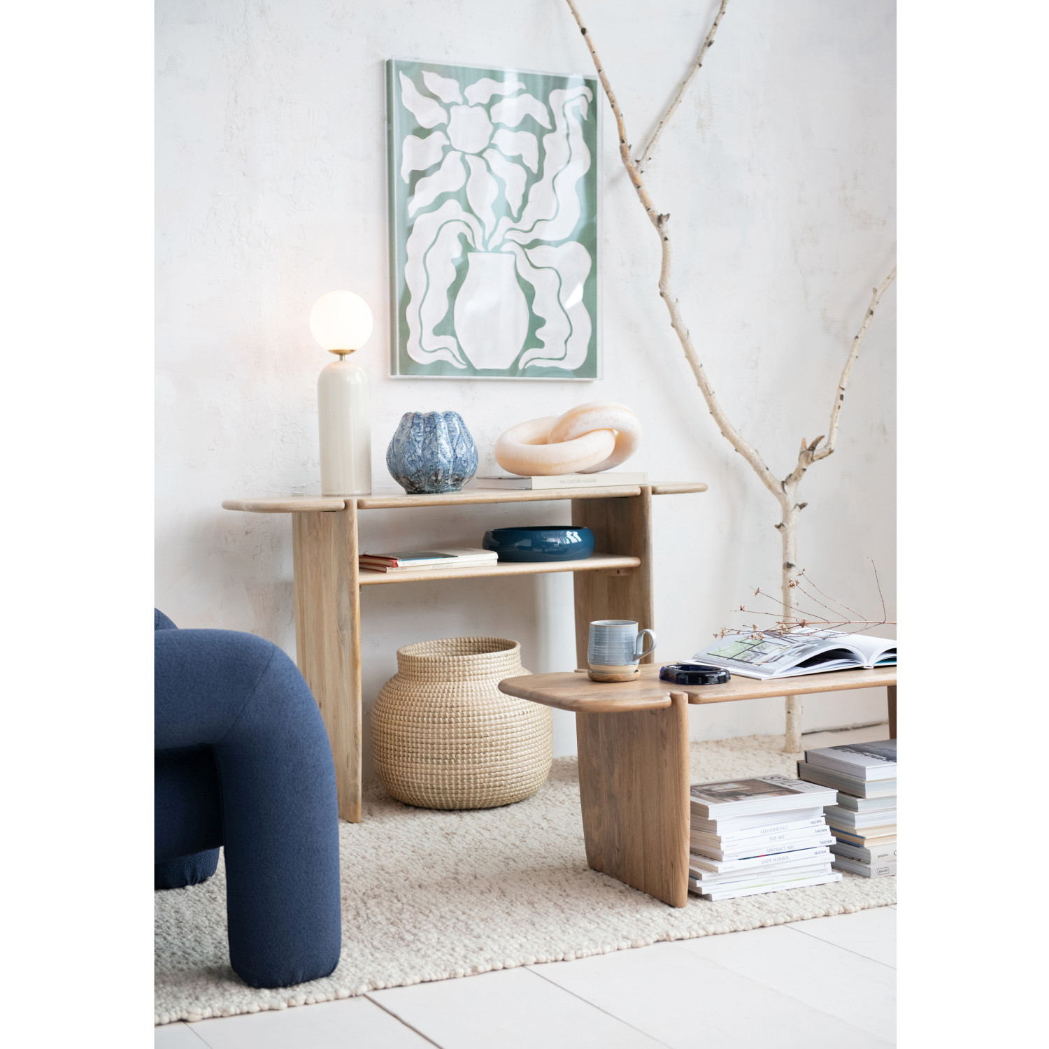 Mango Wood Table w/ Shelf, Bleached, KD