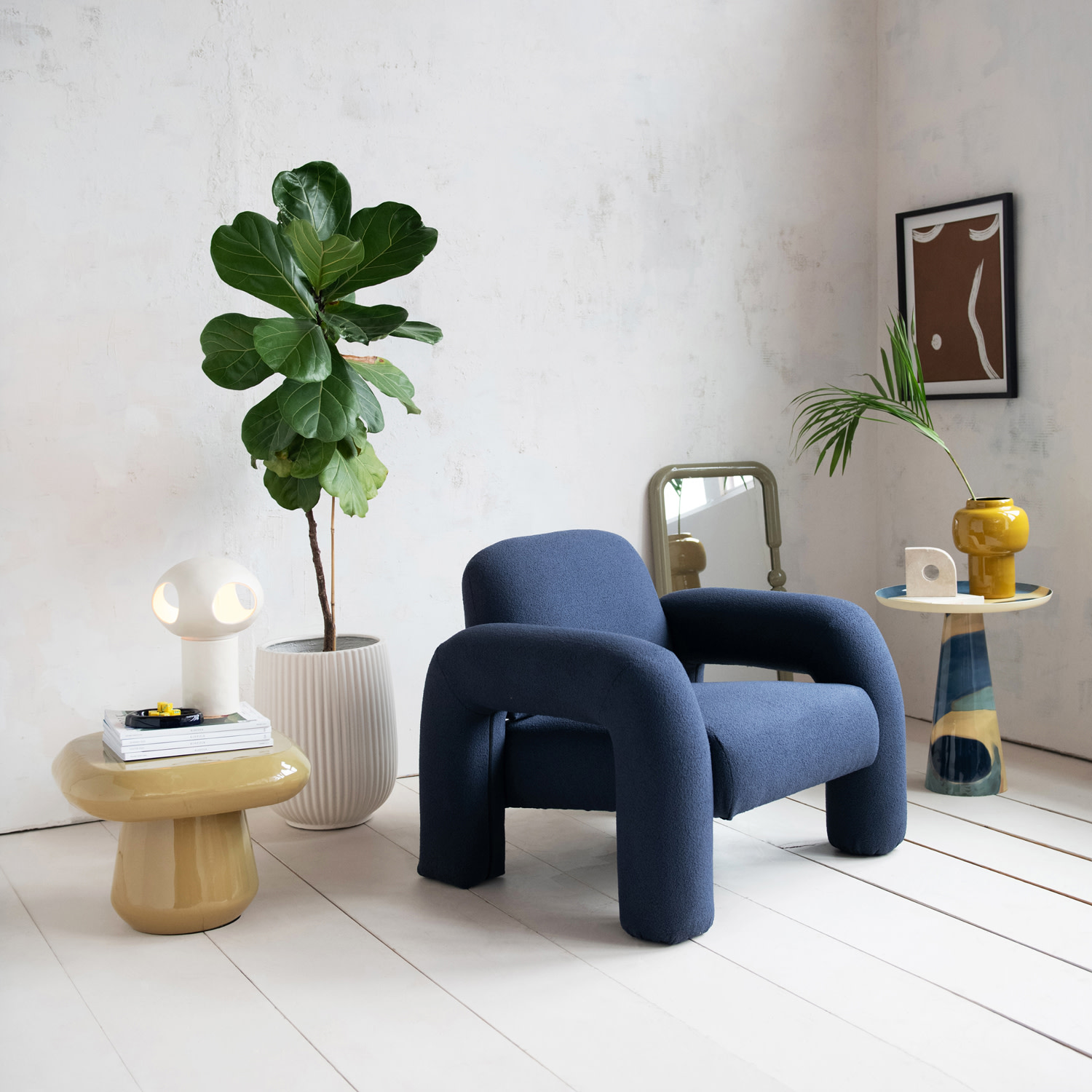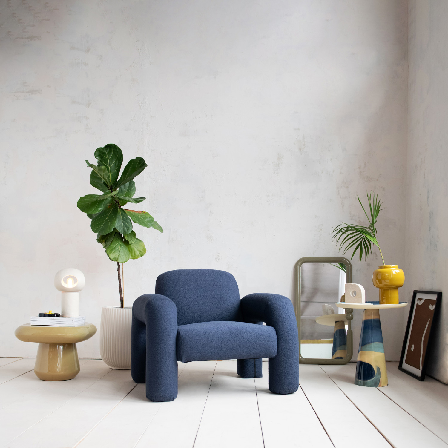 Catalog Name: 19" Square x 14-1/4"H Enameled Metal Table, Mustard Color, KD