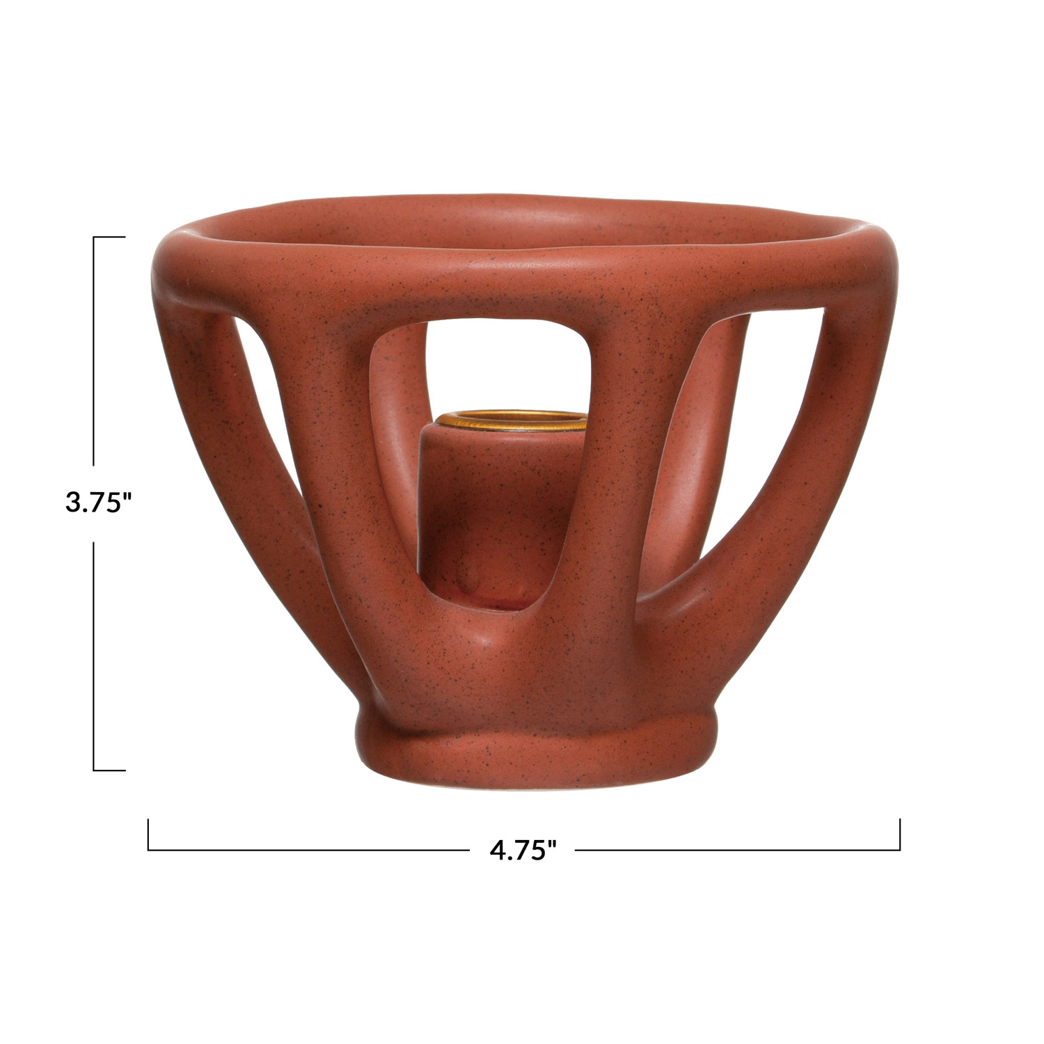 Catalog Name: 4-3/4" Round x 3-3/4"H Stoneware Taper Holder, Terra-cotta Color