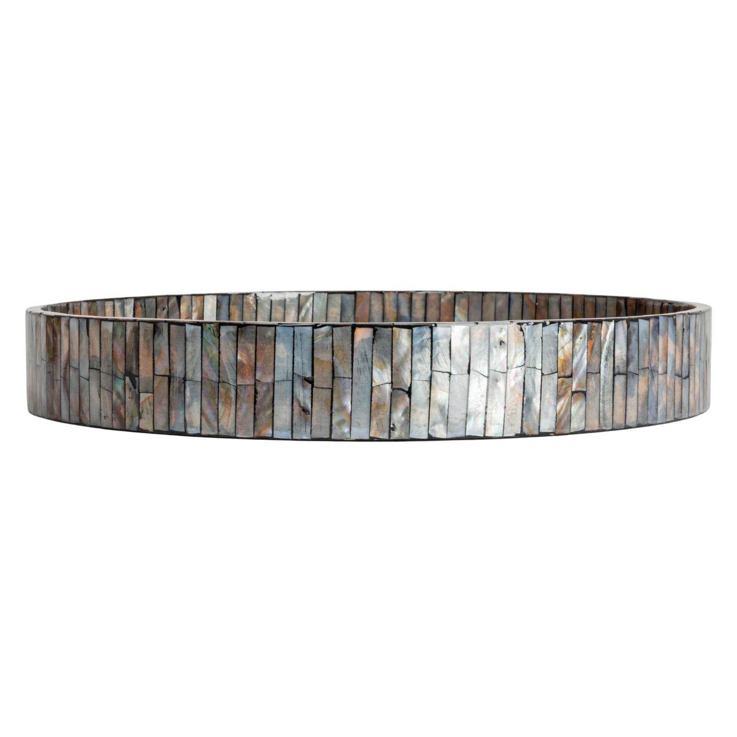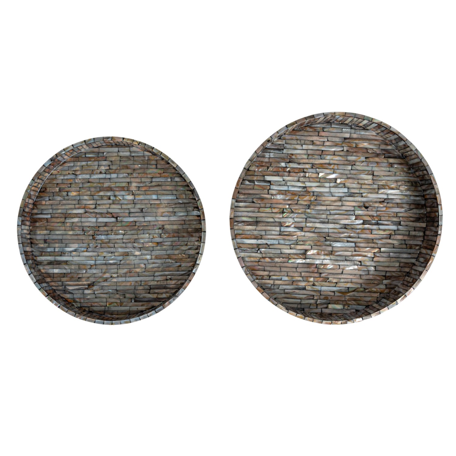 Catalog Name: 15" Round x 3-1/4"H Decorative Mother of Pearl & MDF Trays w/ Handles, Black & Natural, Set of 2