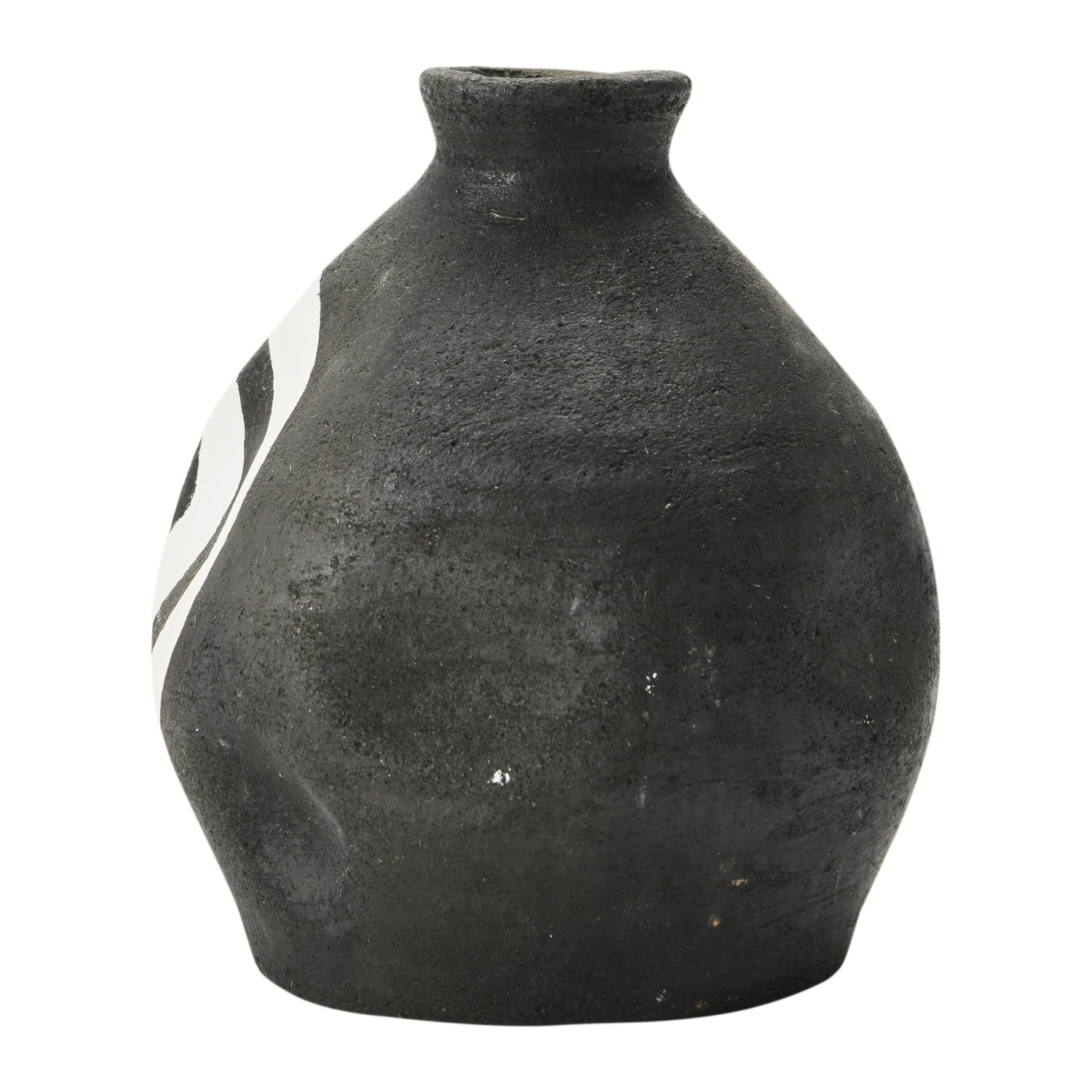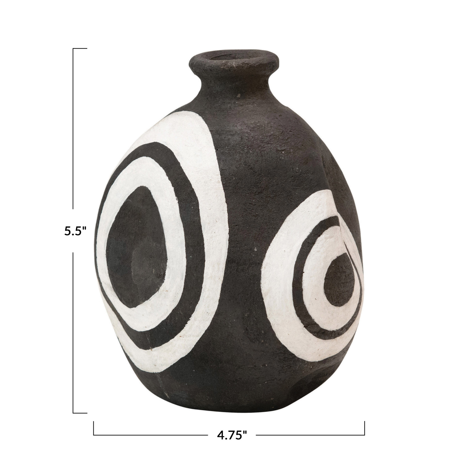 Catalog Name: 4-3/4"L x 4"W x 5-1/2"H Handmade Terra-cotta Vase w/ Circles, Black & White