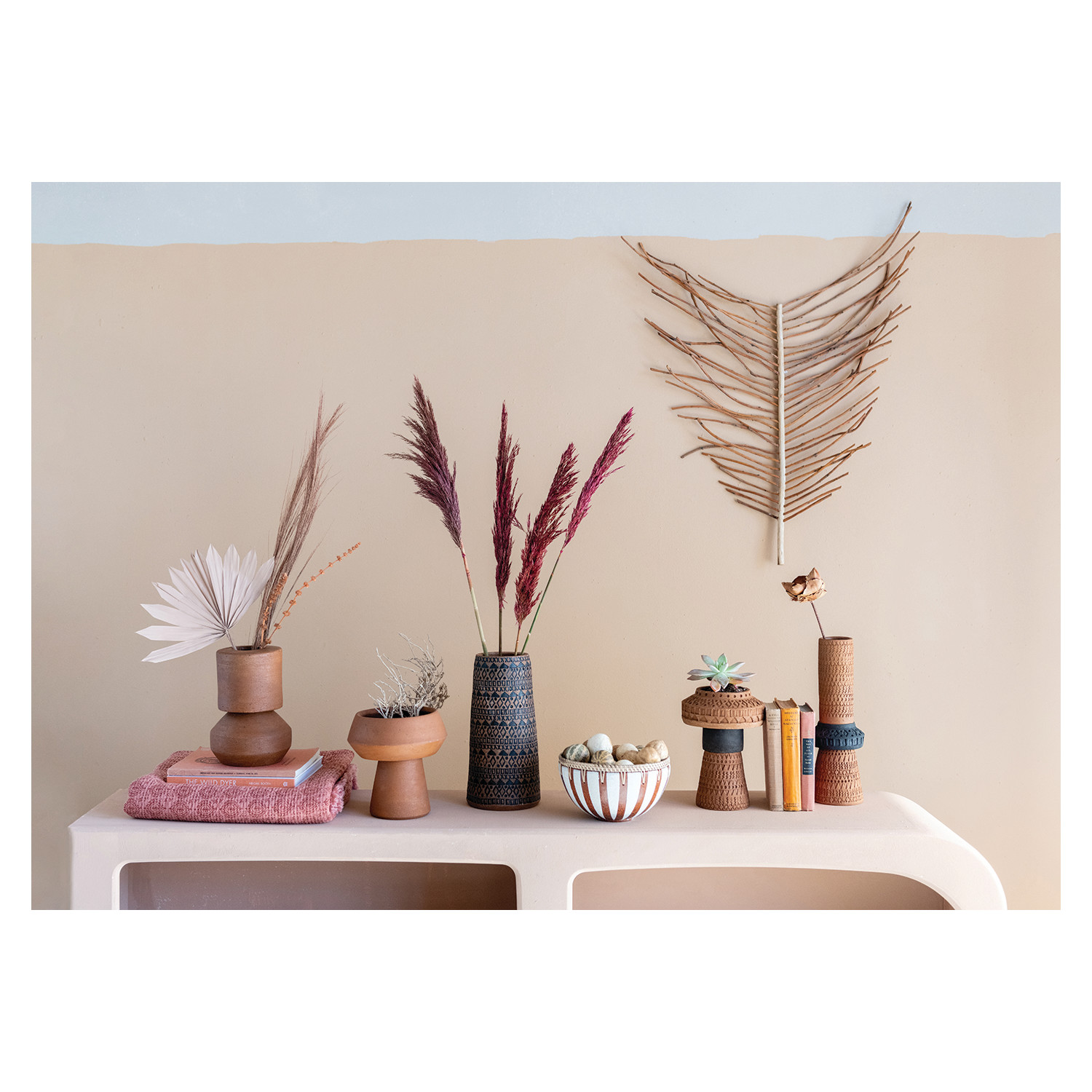 This simple and sleek vase is the perfect partner to florals. Handmade, this terracotta vase features a uniquely shaped base. Easily fill with dried pampas grass for a boho home, or fresh blooms for a bright decoration.
