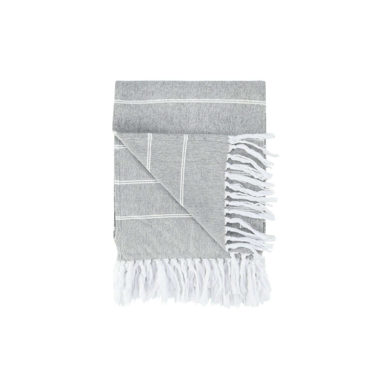 Fold one of these cotton throws and lay it over a seat back for added decor. The warm grey stripes along with end fringe will add a soft accent to any space. It is also ideal for an added touch of decor at the end of a bed or displayed neatly over the arm of a sofa.