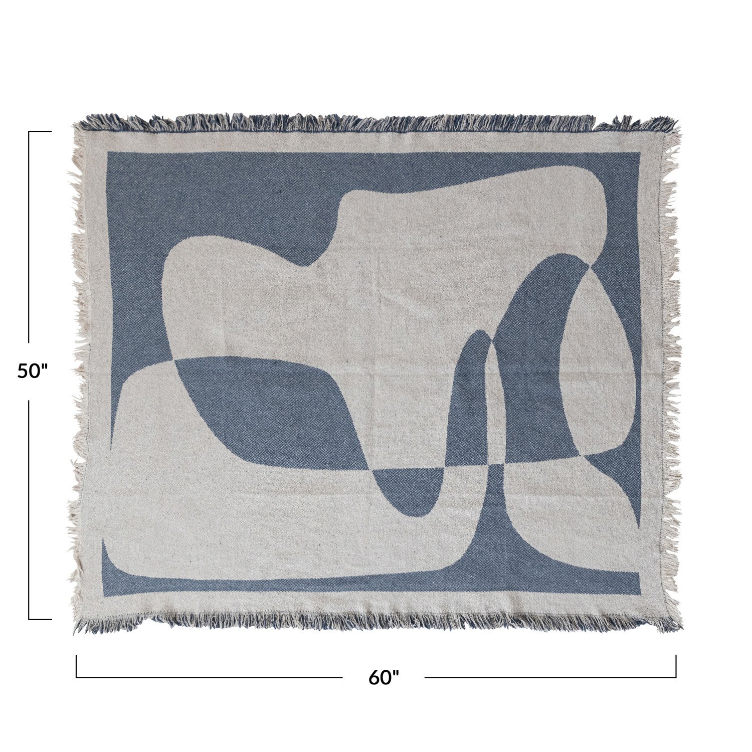 Catalog Name: 60"L x 50"W Woven Recycled Cotton Blend Jacquard Throw w/ Abstract Design & Eyelash Fringe, Natural & Blue