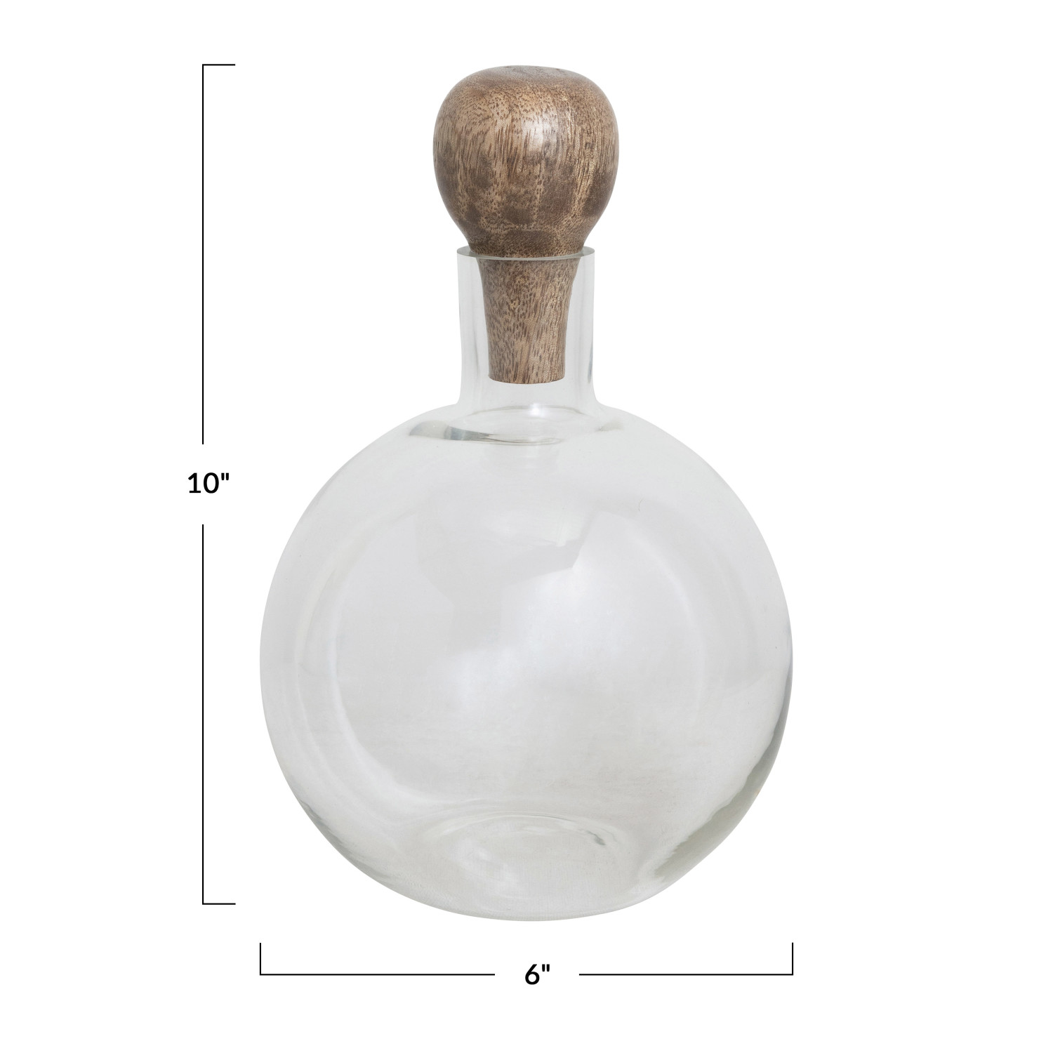 Catalog Name: 6" Round x 10"H 48 oz. Glass Decanter w/ Mango Wood Stopper