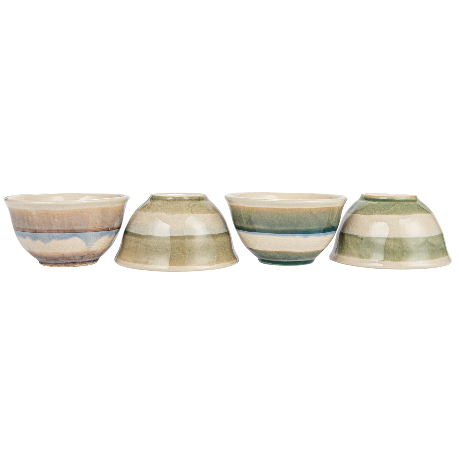 Catalog Name: 4" Round x 2"H Stoneware Bowl w/ Stripes, Reactive Crackle Glaze, 4 Colors (Each One Will Vary)