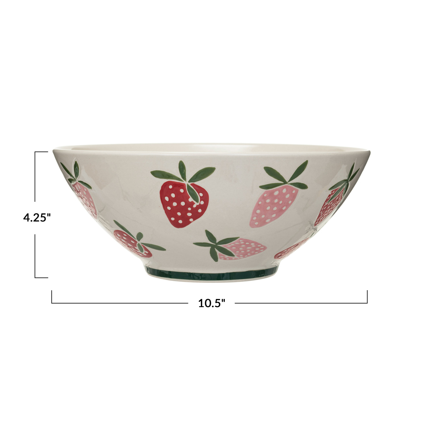 Catalog Name: 10-1/2" Round x 4-1/4"H Hand-Painted Stoneware Bowl w/ Wax Relief Strawberries, Multi Color ©