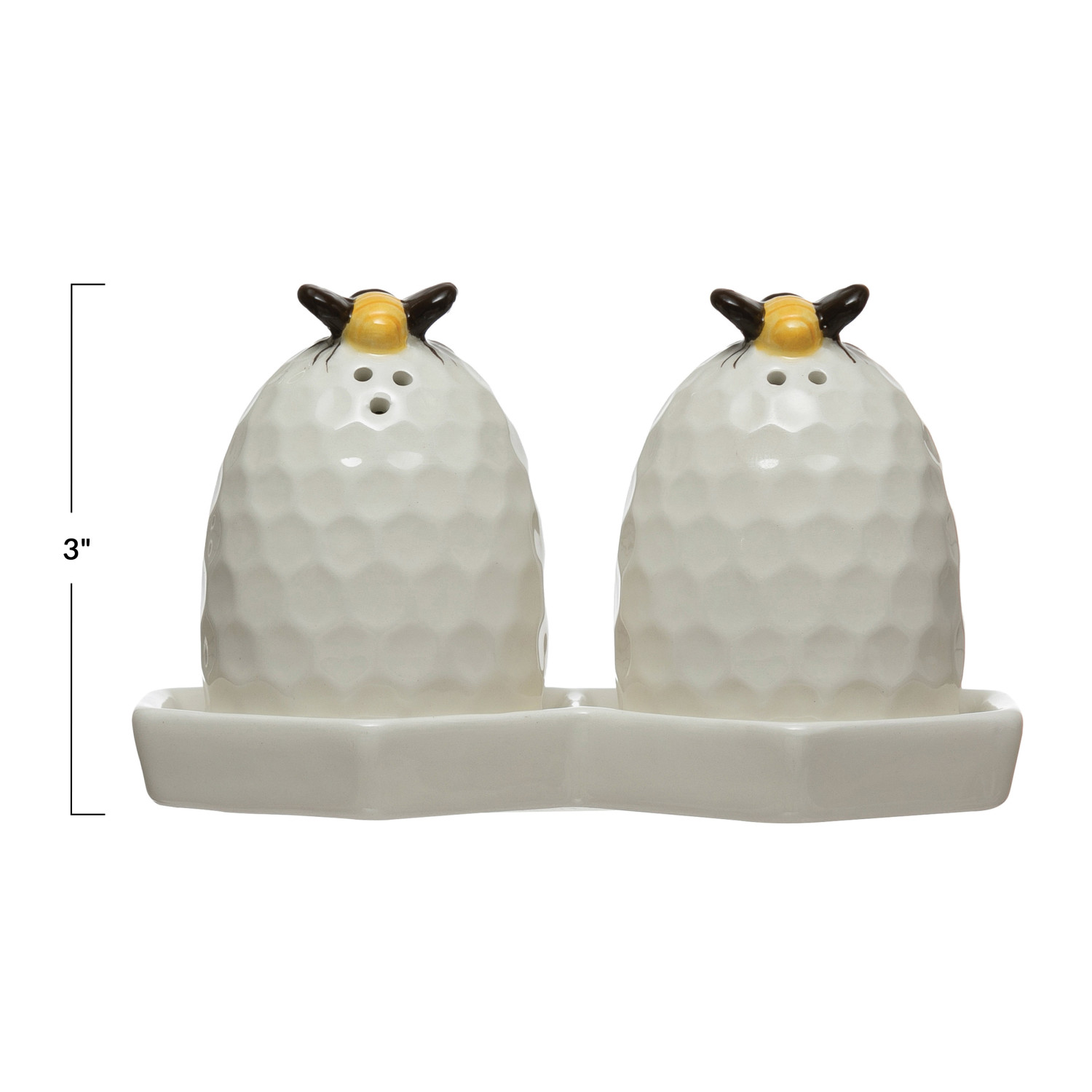 Catalog Name: 6"L Ceramic Vintage Reproduction Beehive Salt & Pepper Shakers w/ Honeycomb Plate, Set of 3