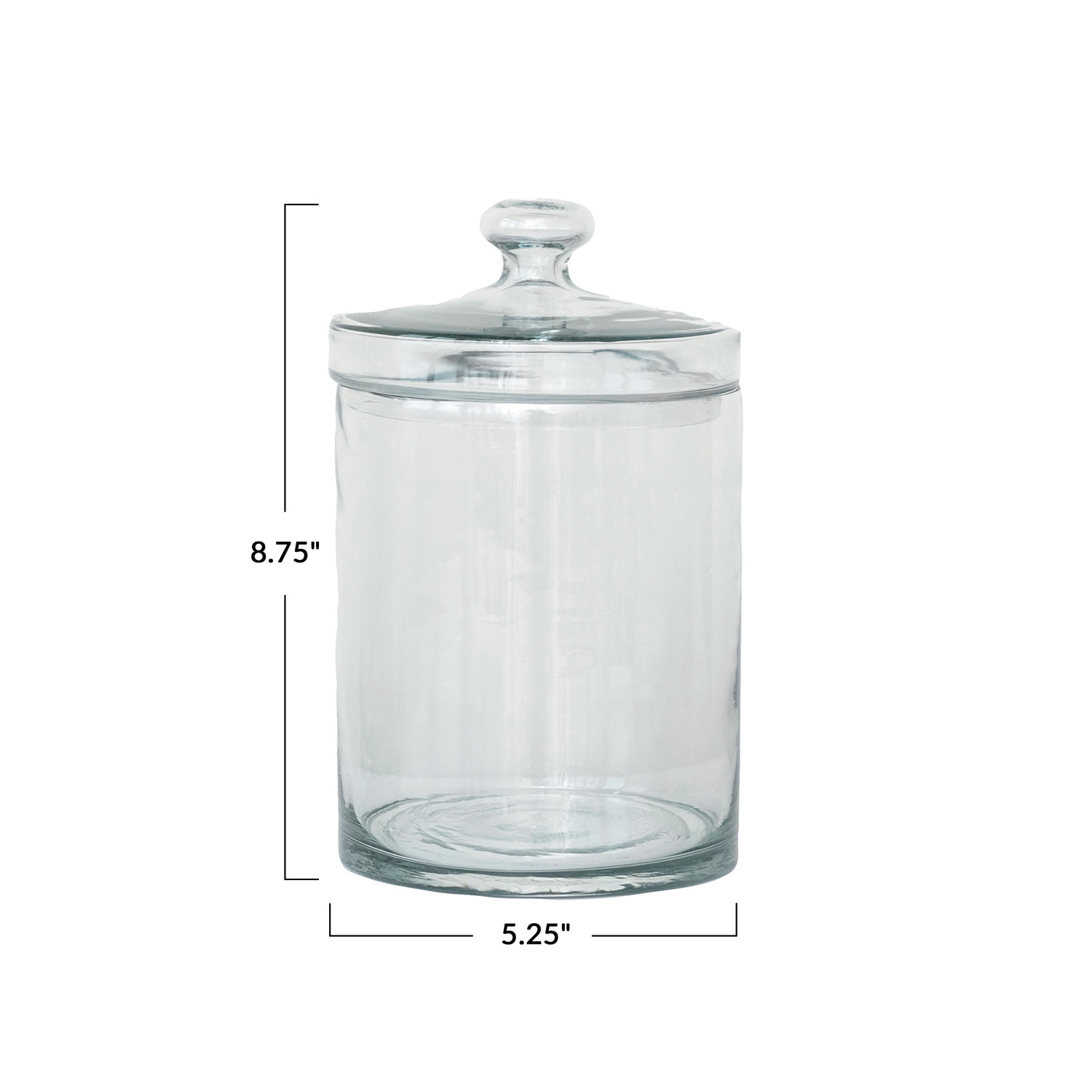 This Round Cup Glass Jar with Lid is a blend of functionality and decorative appeal. The clear glass allows for easy identification of the contents, while the embossed design adds a touch of sophistication. Whether used to store kitchen essentials or as an elegant way to display collectibles, this jar fits seamlessly into a variety of decor styles. It measures 5.25 inches in diameter and 8.75 inches in height, offering ample space for storage needs. Its round shape and size are perfect for both practical storage and aesthetic display, making it a versatile addition to any farmhouse, French country, or vintage setting. The jar's classic design ensures it will remain a cherished piece for years to come.