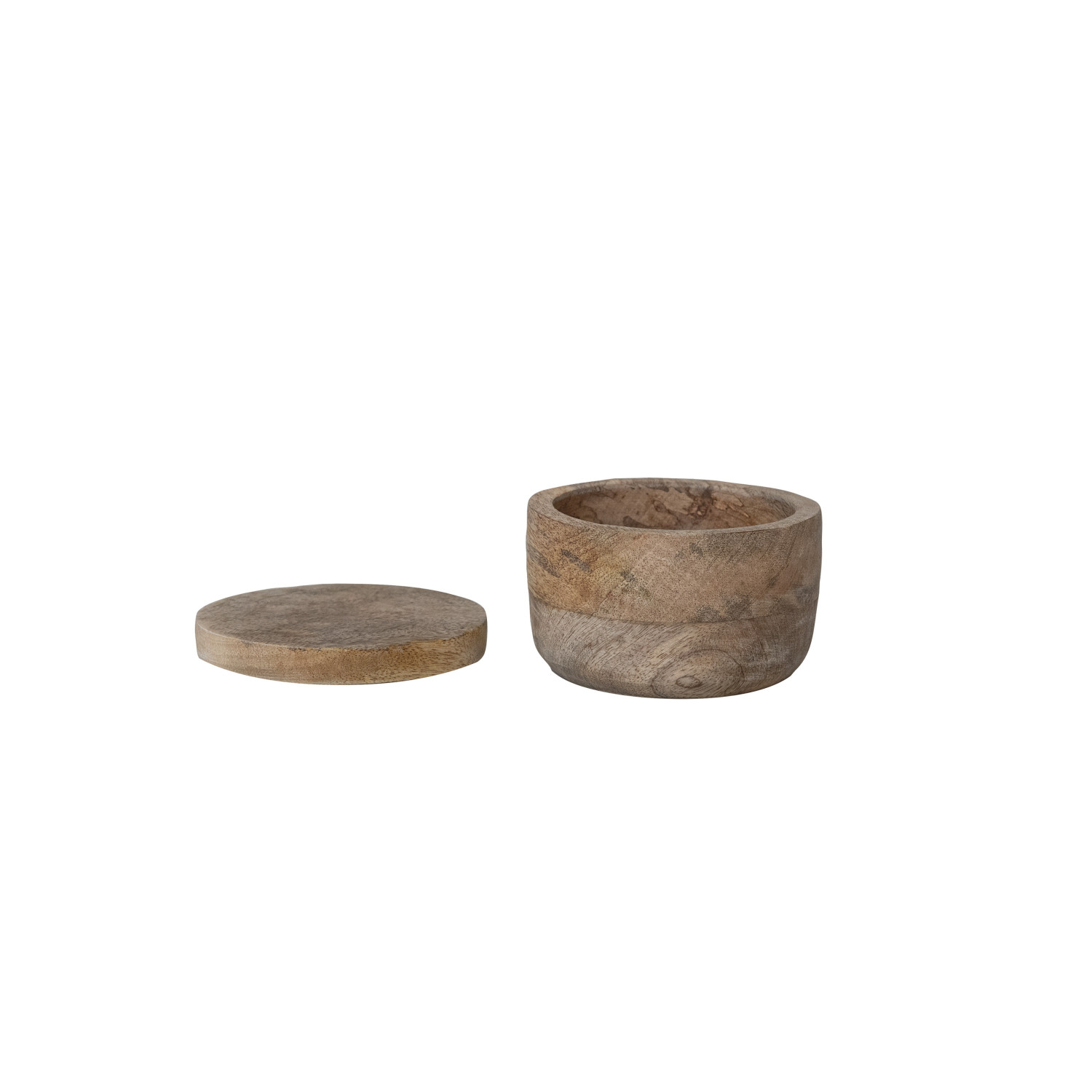 Catalog Name: 4-3/4" Round x 3-1/4"H Mango Wood Salt Cellar w/ Lid, Natural
