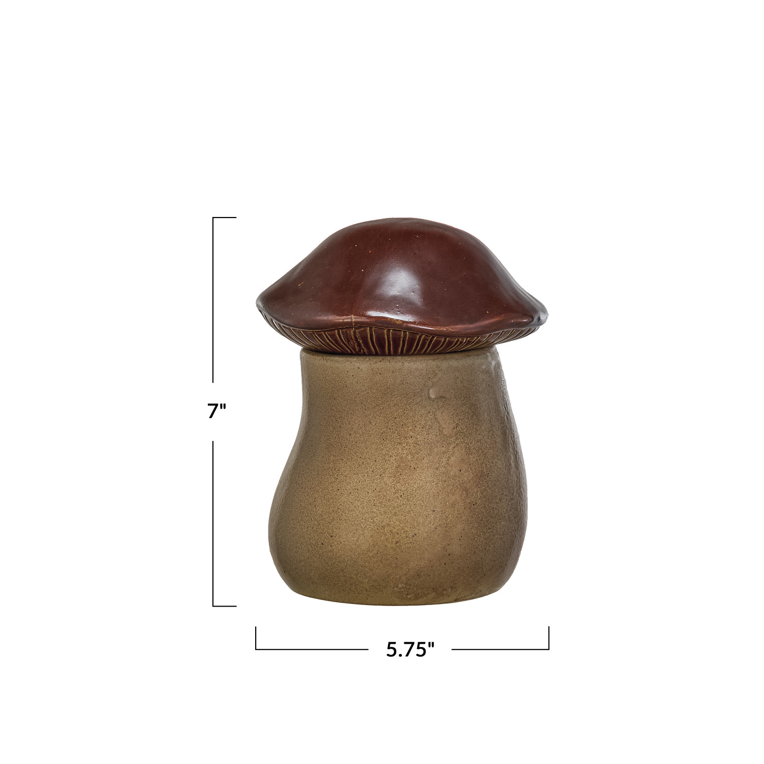 Catalog Name: 5-3/4" Round x 7"H Stoneware Mushroom Canister, Reactive Glaze, Brown & Tan Color (Each One Will Vary)