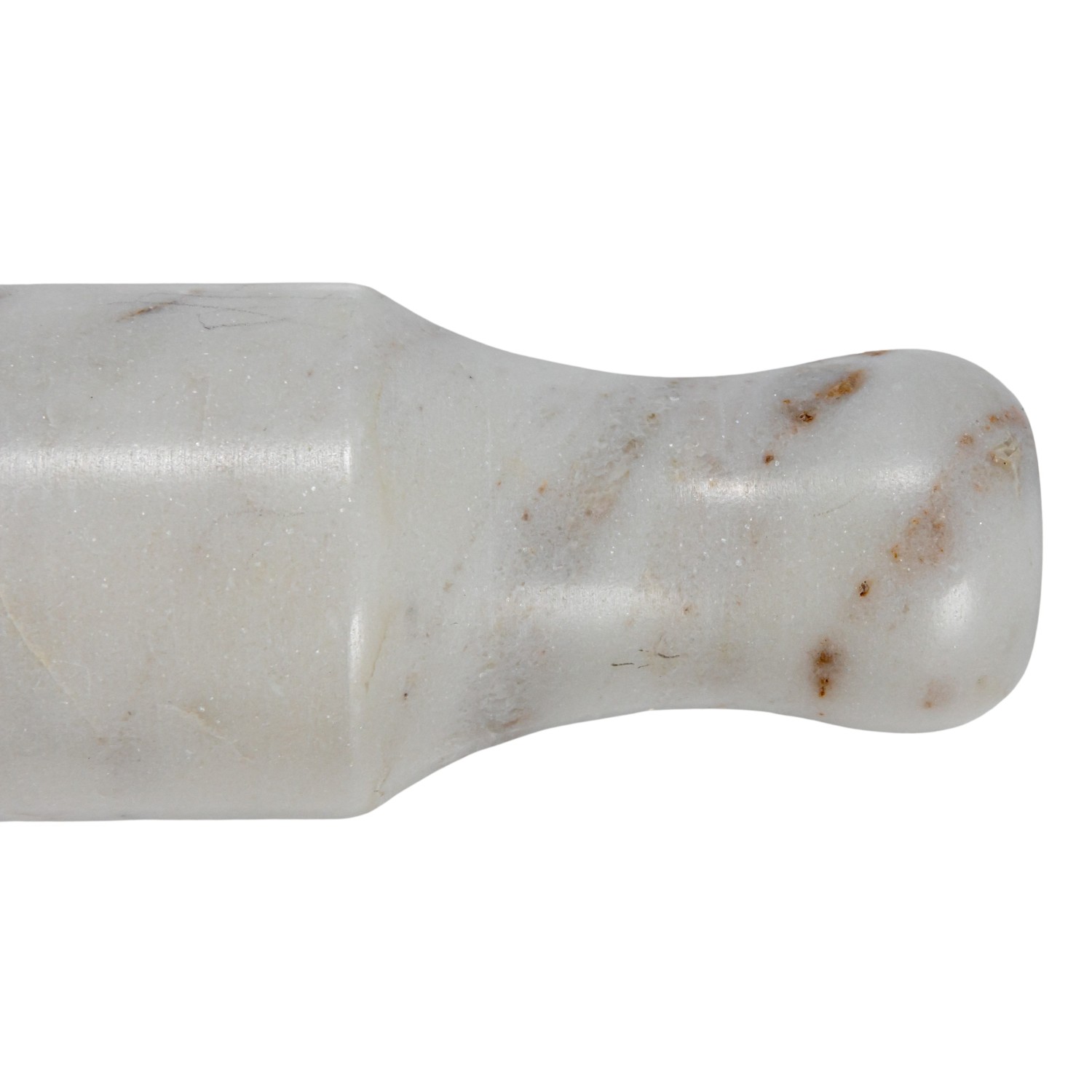 This rolling pin is a must-have for any baker or pastry chef. It is crafted from white marble, a beautiful and timeless material that adds elegance to any kitchen. The rolling pin has a round shape and a heavy weight that makes it easy to roll out dough for pies, cookies, pizzas, and more. The marble also stays cool and prevents the dough from sticking, ensuring a perfect result every time. The rolling pin can also be used to crush nuts, crackers, or ice for various recipes. The rolling pin is easy to clean and store, and it will last for years. Either making a simple or a fancy dessert, this rolling pin will help create it with ease and style.