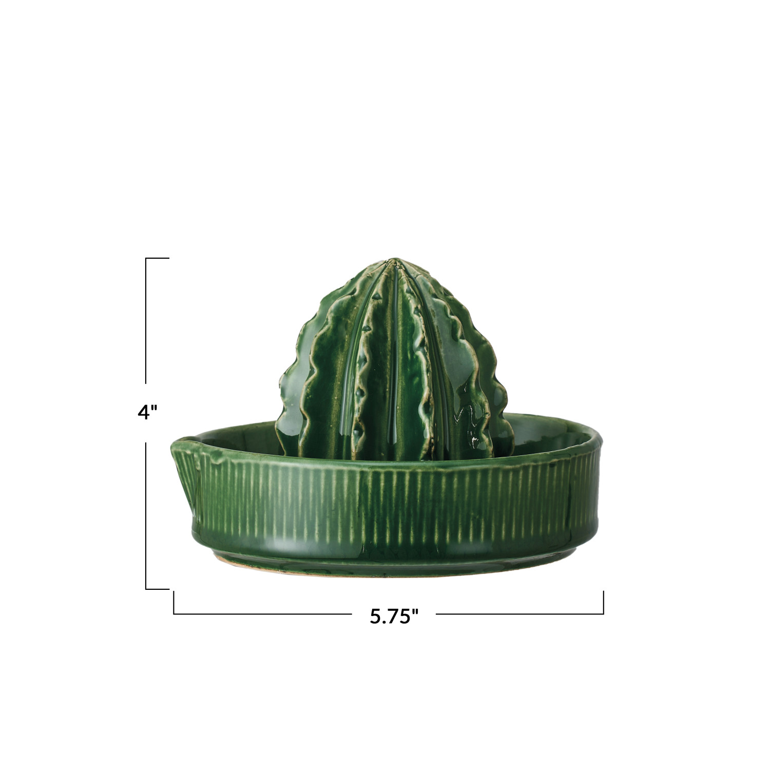 This charming Cactus-Shaped Juicer is expertly crafted from green stoneware, offering both functionality and style. Its 5.75-inch round base and 4-inch height make it a practical size for daily use, while the playful design adds a touch of bohemian flair to the kitchen. Ideal for those who appreciate a mix of farmhouse warmth and eclectic design, this juicer is a conversation starter that also serves up fresh citrus juices with ease. Durable and easy to clean, it's a unique kitchen accessory that combines form with function. Whether for squeezing lemons for a refreshing drink or adding a splash of citrus to various recipes, this juicer is sure to become a staple in the kitchen.