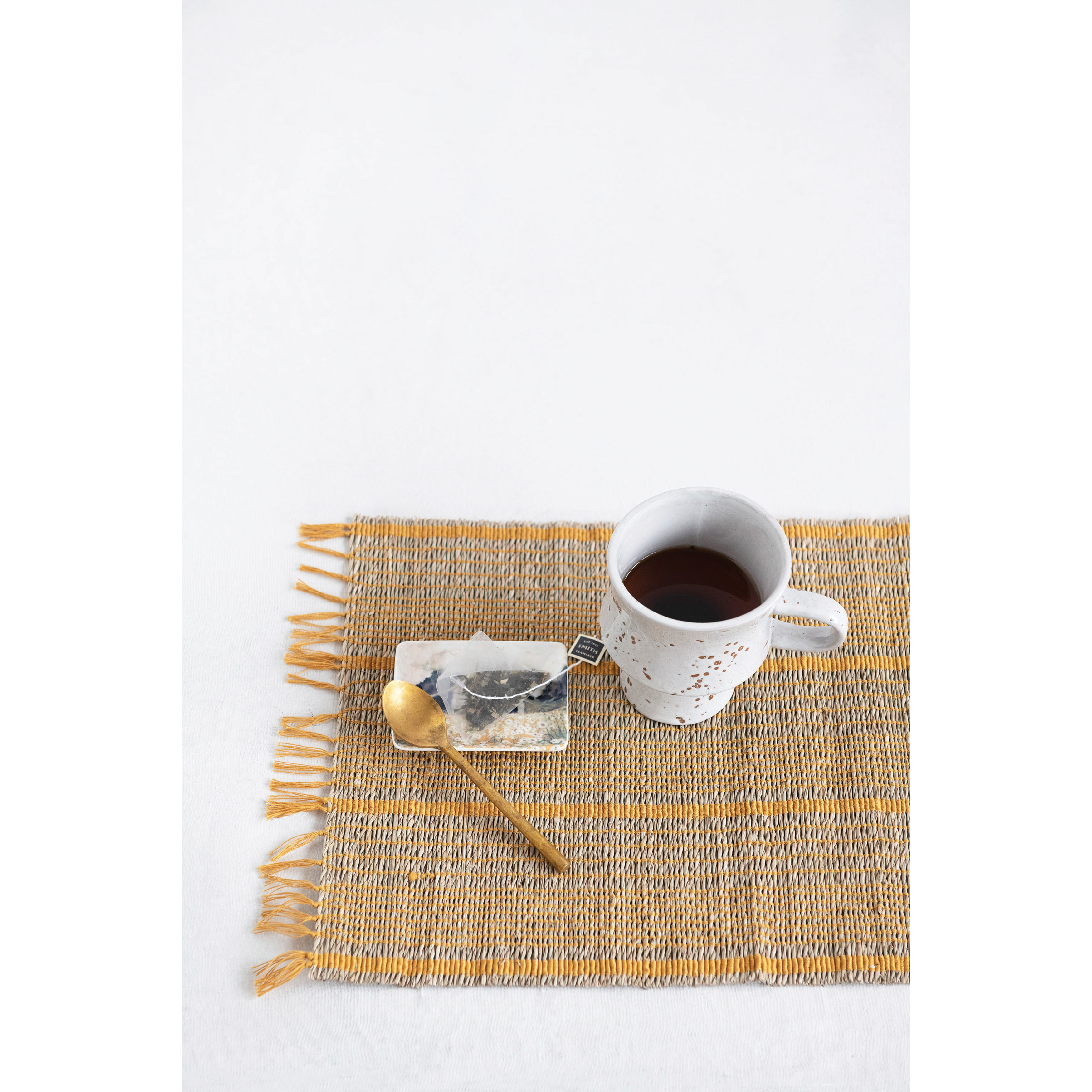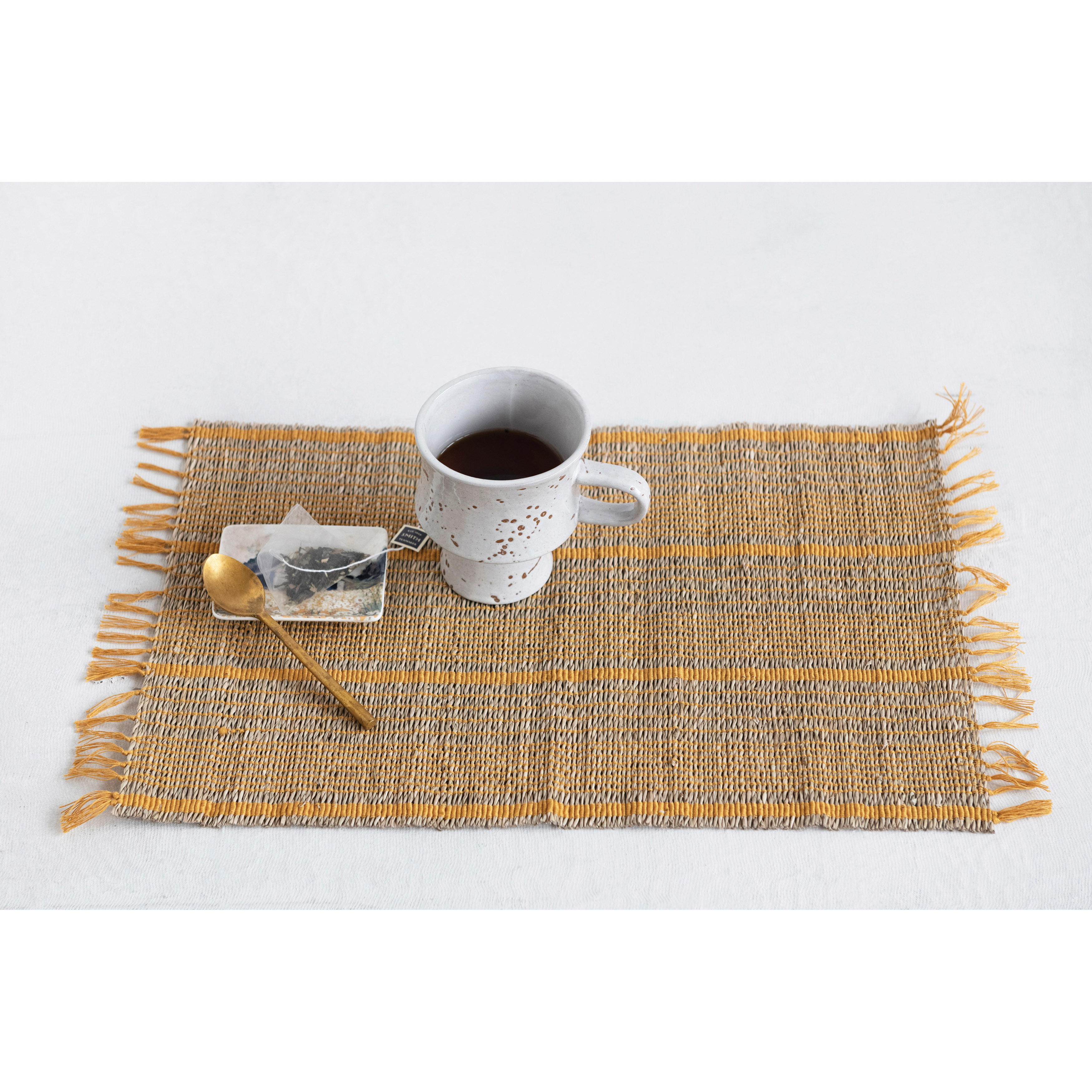 Catalog Name: 17-3/4"L x 13"W Bamboo Placemat w/ Stripes & Fringe, Natural & Mustard Color