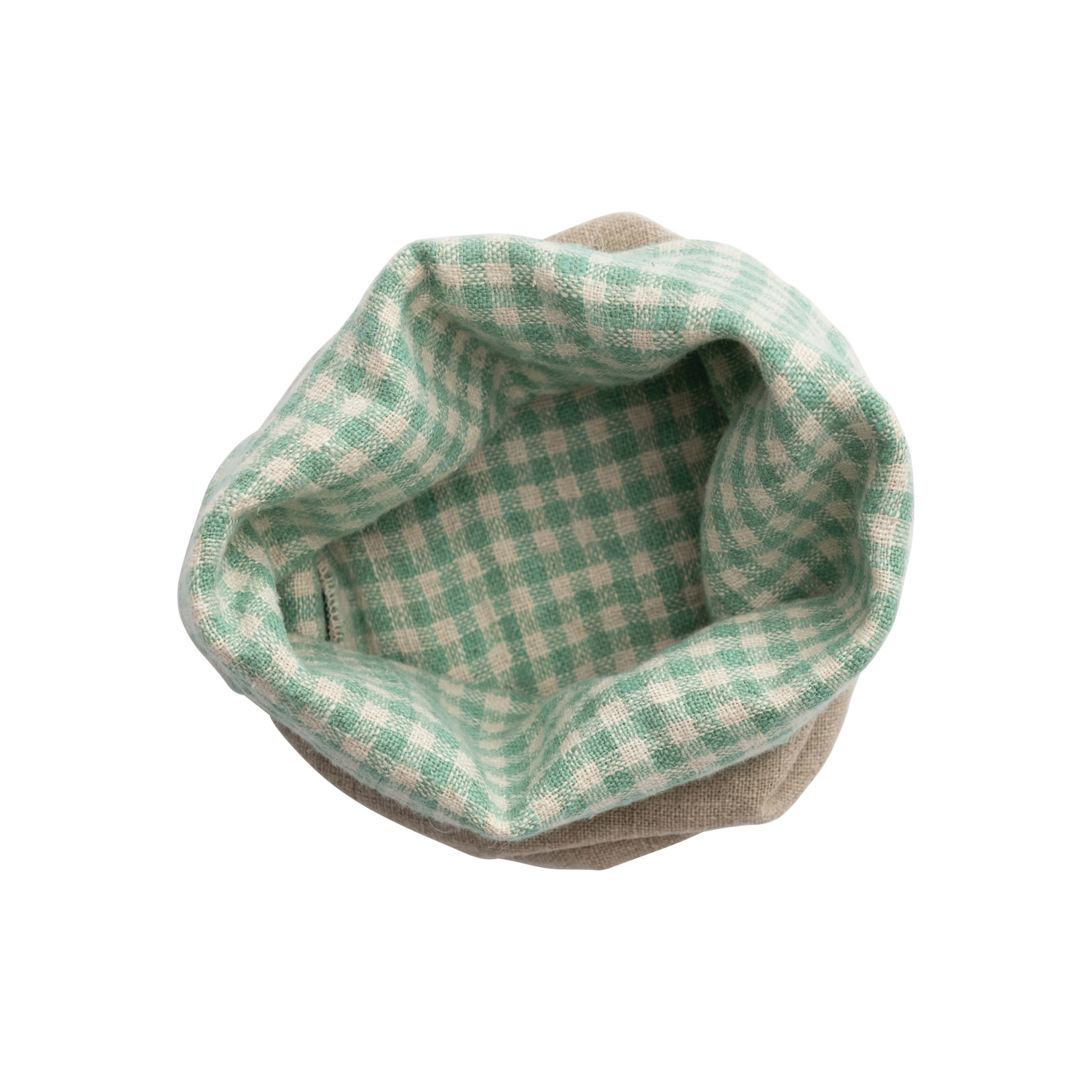 Catalog Name: 7" Round x 9"H Hand-Woven Linen Bread Basket w/ Gingham Pattern Lining, Aqua
