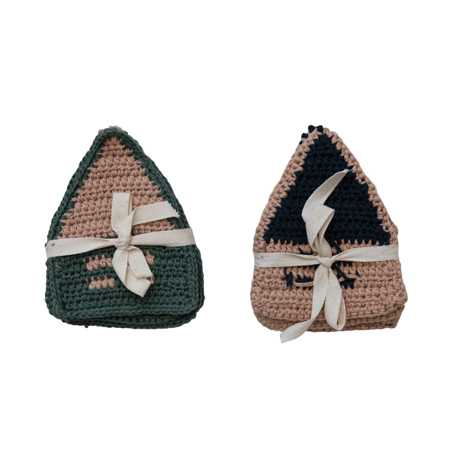 Handmade Cotton Crocheted House Shaped Coasters, 2 Colors, Set of 4