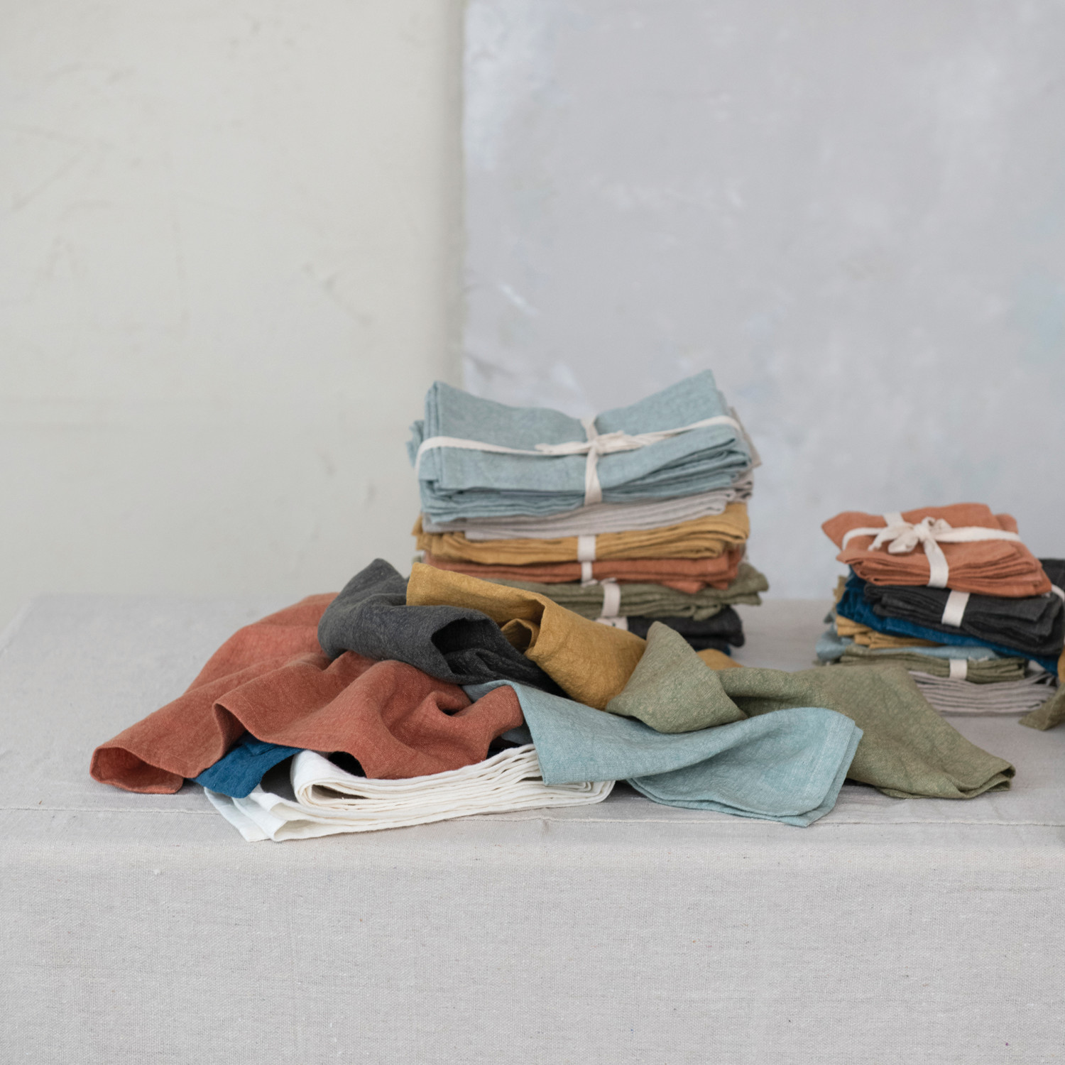 For those who love to entertain and impress their guests, a collection of textiles that can add some style and flair to the kitchen and dining table is essential. Whether they want to protect their clothes, hands, and surfaces from spills and heat, or create a stunning table setting with napkins and runners, there are the perfect textiles for them. They can choose from a wide range of shapes, sizes, designs, and materials such as cotton, linen, polyester, and bamboo. They can mix and match them to create their own unique style or choose a matching set for a harmonious look. No matter what they choose, they can be sure that the textiles are high-quality, durable, and easy to clean. These versatile napkins add a touch of sophistication to any occasion, whether it's a festive party or everyday use in the kitchen. Purely made from Linen. Offers a soft and textured feel, a simple and classic square shape, a variety of colors to suit every style and mood, and a sleek and neat design without any knots, stripes, or ties. Suitable for various home decor styles, including modern, rustic, and farmhouse, perfect for entertaining guests, adding a refined touch to cocktail parties, dinner gatherings, or special events.