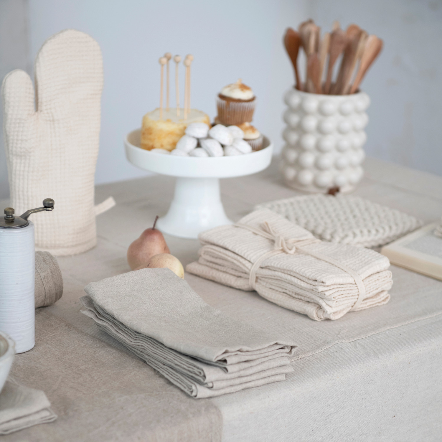 For those who love to entertain and impress their guests, a collection of textiles that can add some style and flair to the kitchen and dining table is essential. Whether they want to protect their clothes, hands, and surfaces from spills and heat, or create a stunning table setting with napkins and runners, there are the perfect textiles for them. They can choose from a wide range of shapes, sizes, designs, and materials such as cotton, linen, polyester, and bamboo. They can mix and match them to create their own unique style or choose a matching set for a harmonious look. No matter what they choose, they can be sure that the textiles are high-quality, durable, and easy to clean. These versatile napkins add a touch of sophistication to any occasion, whether it's a festive party or everyday use in the kitchen. Made from Linen and Cotton. Offers a soft and textured feel, a simple and classic square shape, a variety of colors to suit every style and mood, and a sleek and neat design without any knots, stripes, or ties. Suitable for various home decor styles, including modern, rustic, and farmhouse, perfect for entertaining guests, adding a refined touch to cocktail parties, dinner gatherings, or special events.