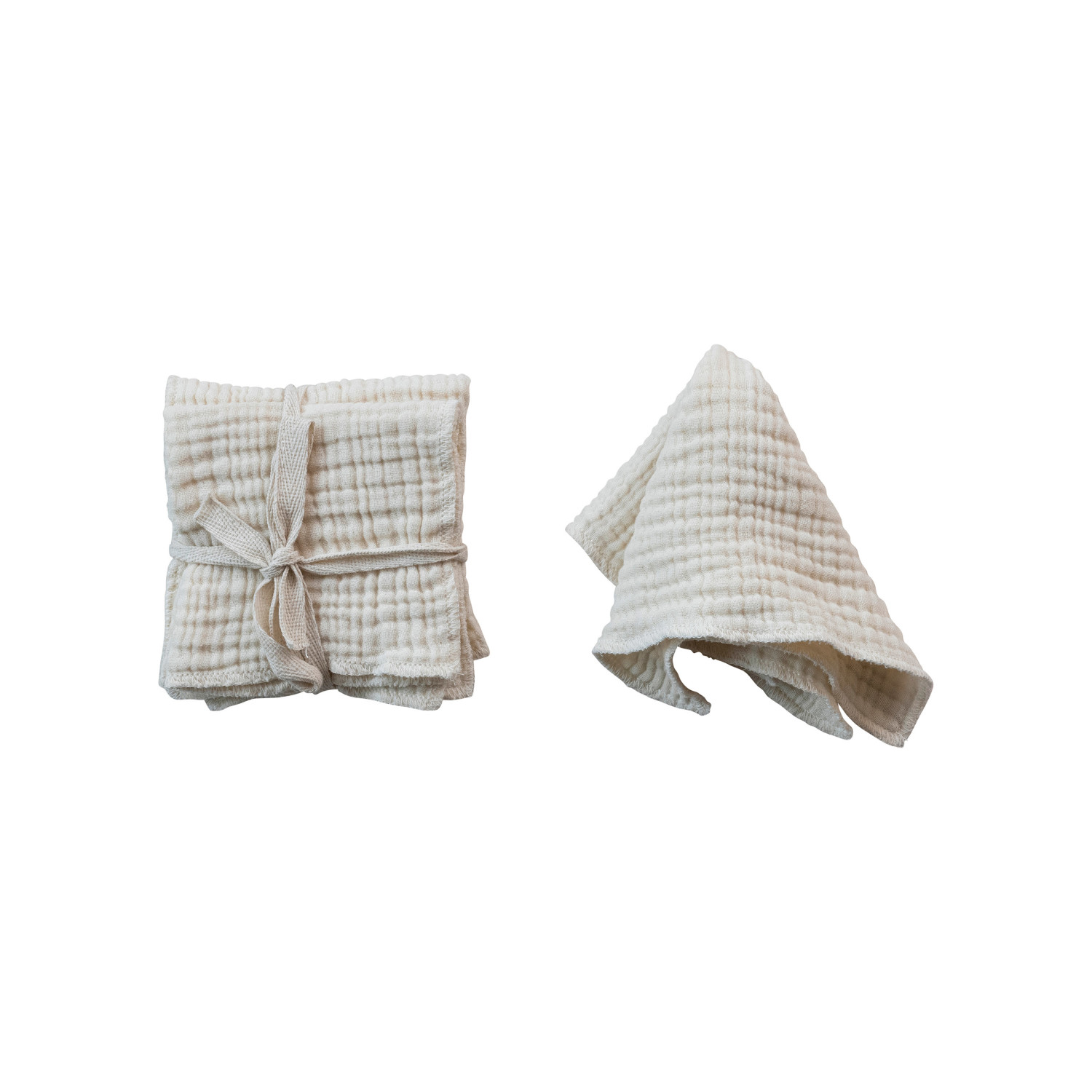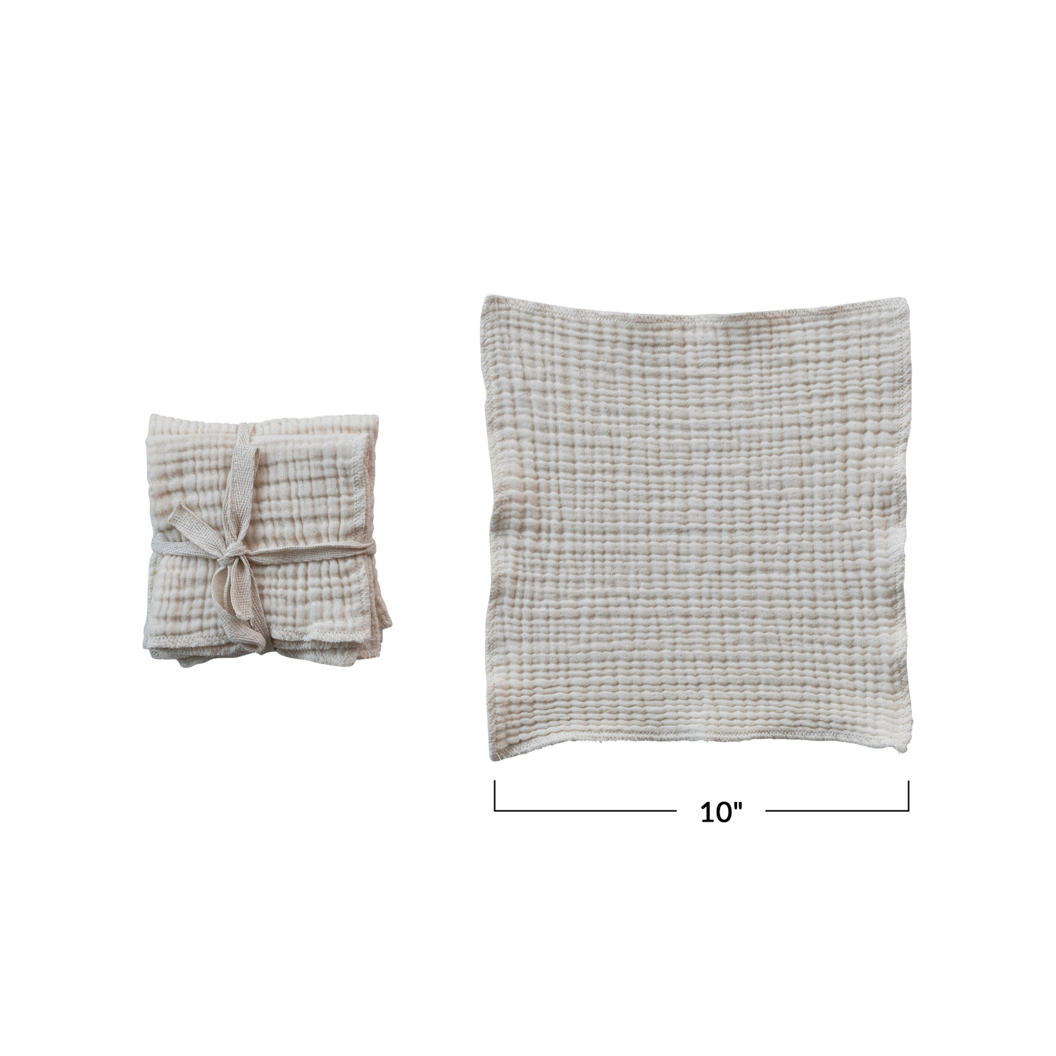 Catalog Name: 10" Square Cotton Double Cloth Dish Cloths, Cream Color, Set of 4