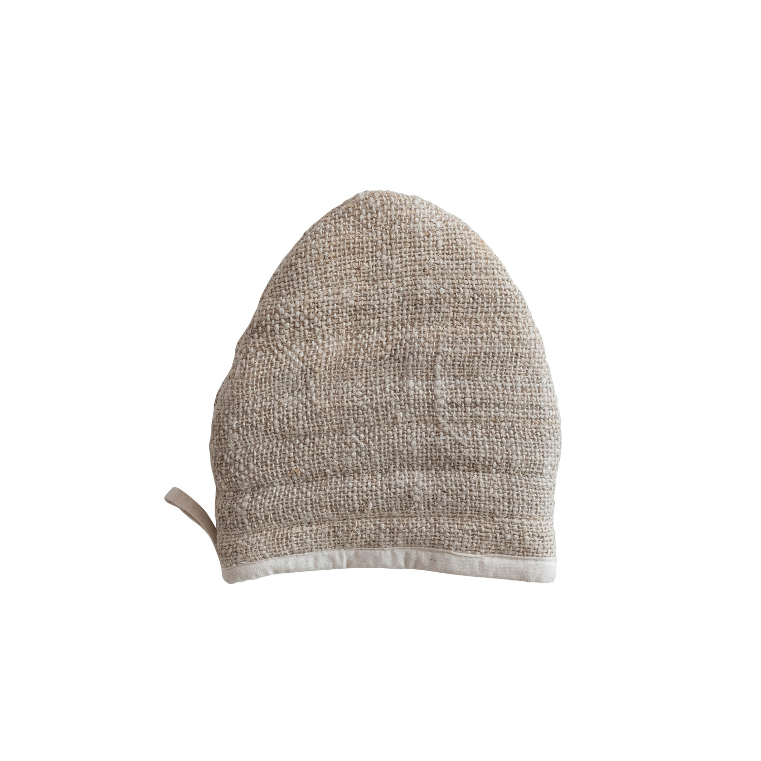 Catalog Name: 6"L x 6"W Woven Hemp Fiber & Cotton Canvas Oven Mitt, Natural & White