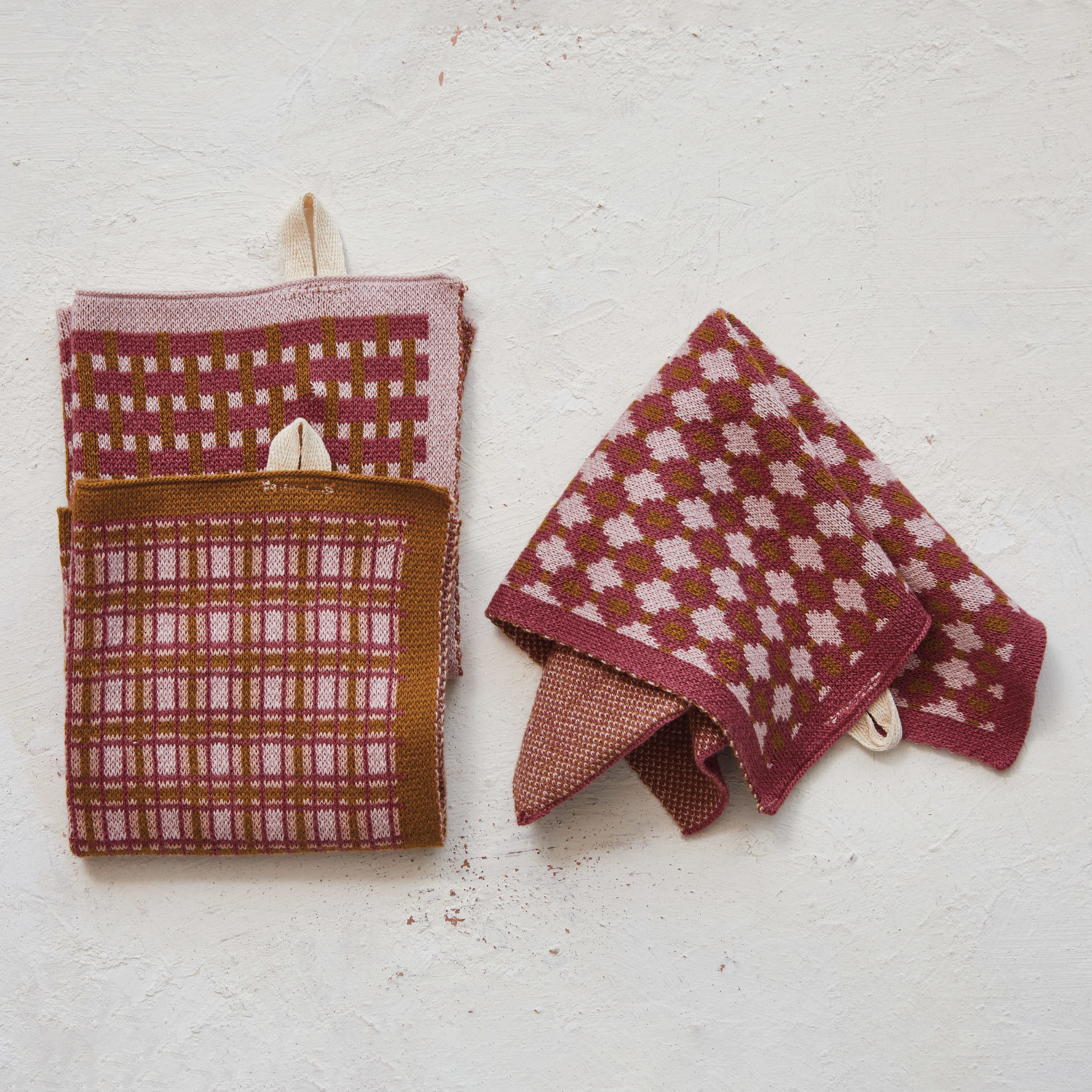 Cotton Knit Dish Cloth w/ Pattern & Loop, 3 Styles