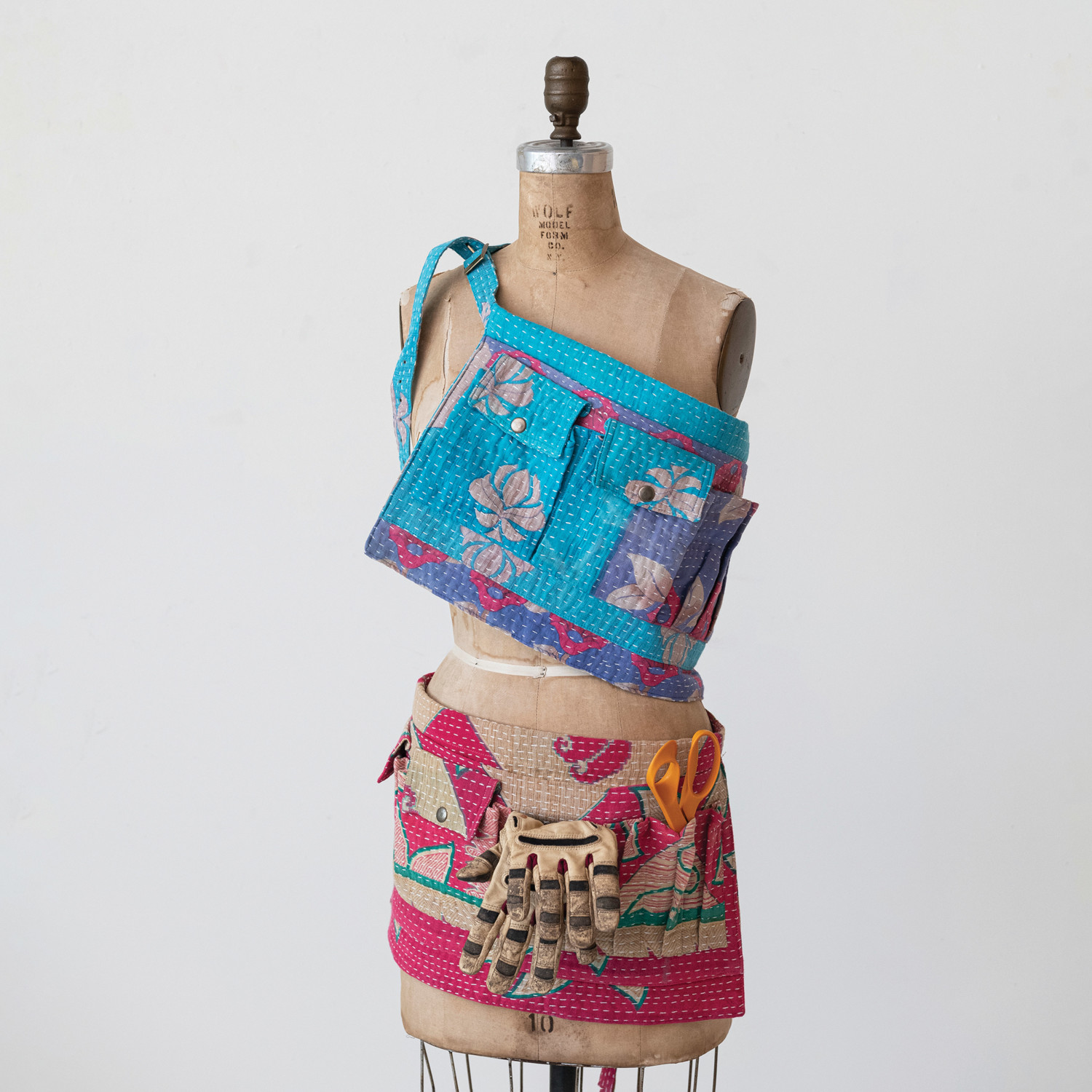 Vintage Kantha Fabric Half Apron w/ Canvas Back & 6 Pockets (Each One Will Vary)