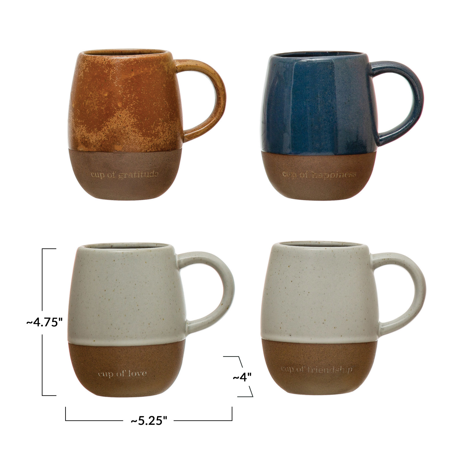 Catalog Name: 4" Round x 4-3/4"H 14 oz. Stoneware Mug w/ Saying & Printed Wood Gift Box, Reactive Glaze, 4 Styles (Each One Will Vary)