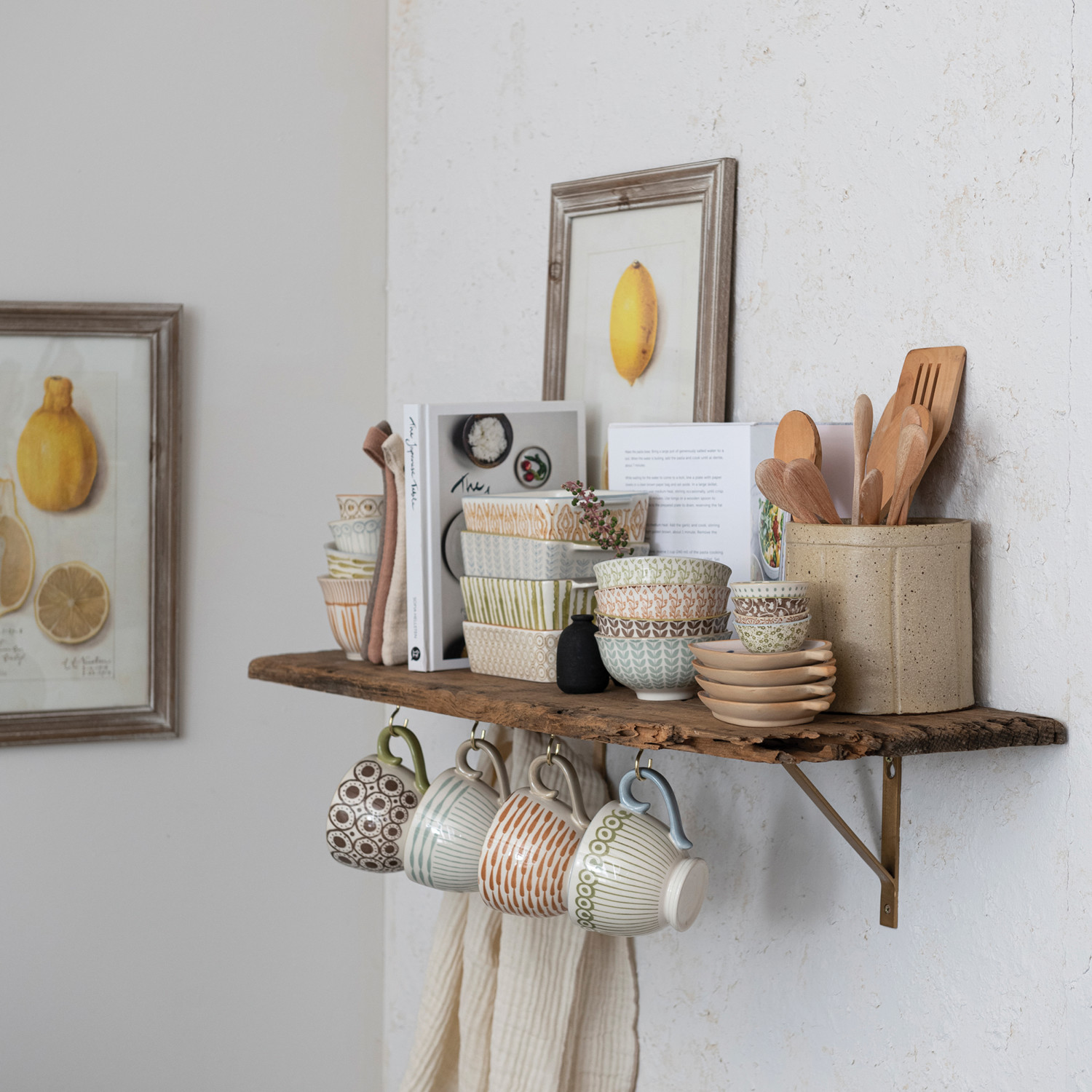 Our thoughtfully crafted collection of drinkware showcases an expansive selection of material compositions and artisanal silhouettes designed for the modern host. Explore a wide array of pieces that are both fashionable and functional including drinking glasses, mugs, stemmed champagne glasses, stemless wine glasses, espresso cups, and so much more. Choose from a vast selection of materials from stoneware to glass, and styles from classic farmhouse and mid-century modern to vintage glam and contemporary boho. Add a touch of beauty and sophistication to a special occasion or daily routines with this carefully curated collection of drinkware that is sure to impress. This cottage-inspired set of stoneware mugs showcases 4 styles of intricately painted designs. This piece is food safe. Dishwasher safe. Made from stoneware.