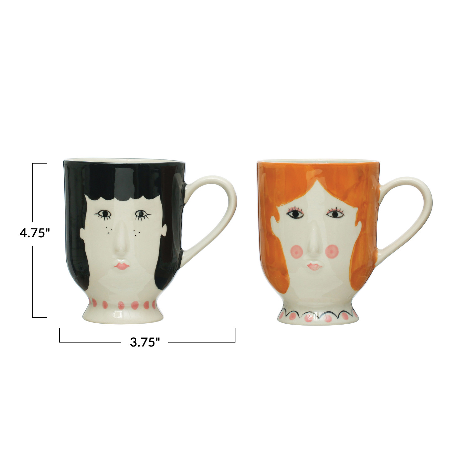 Our thoughtfully crafted collection of drinkware showcases an expansive selection of material compositions and artisanal silhouettes designed for the modern host. Explore a wide array of pieces that are both fashionable and functional including drinking glasses, mugs, stemmed champagne glasses, stemless wine glasses, espresso cups, and so much more. Choose from a vast selection of materials from stoneware to glass, and styles from classic farmhouse and mid-century modern to vintage glam and contemporary boho. Add a touch of beauty and sophistication to a special occasion or daily routines with this carefully curated collection of drinkware that is sure to impress. This eclectic set of stoneware mugs features 2 hand-painted faces in a whimsical folk style. This piece is food safe. Dishwasher safe. Made from stoneware.