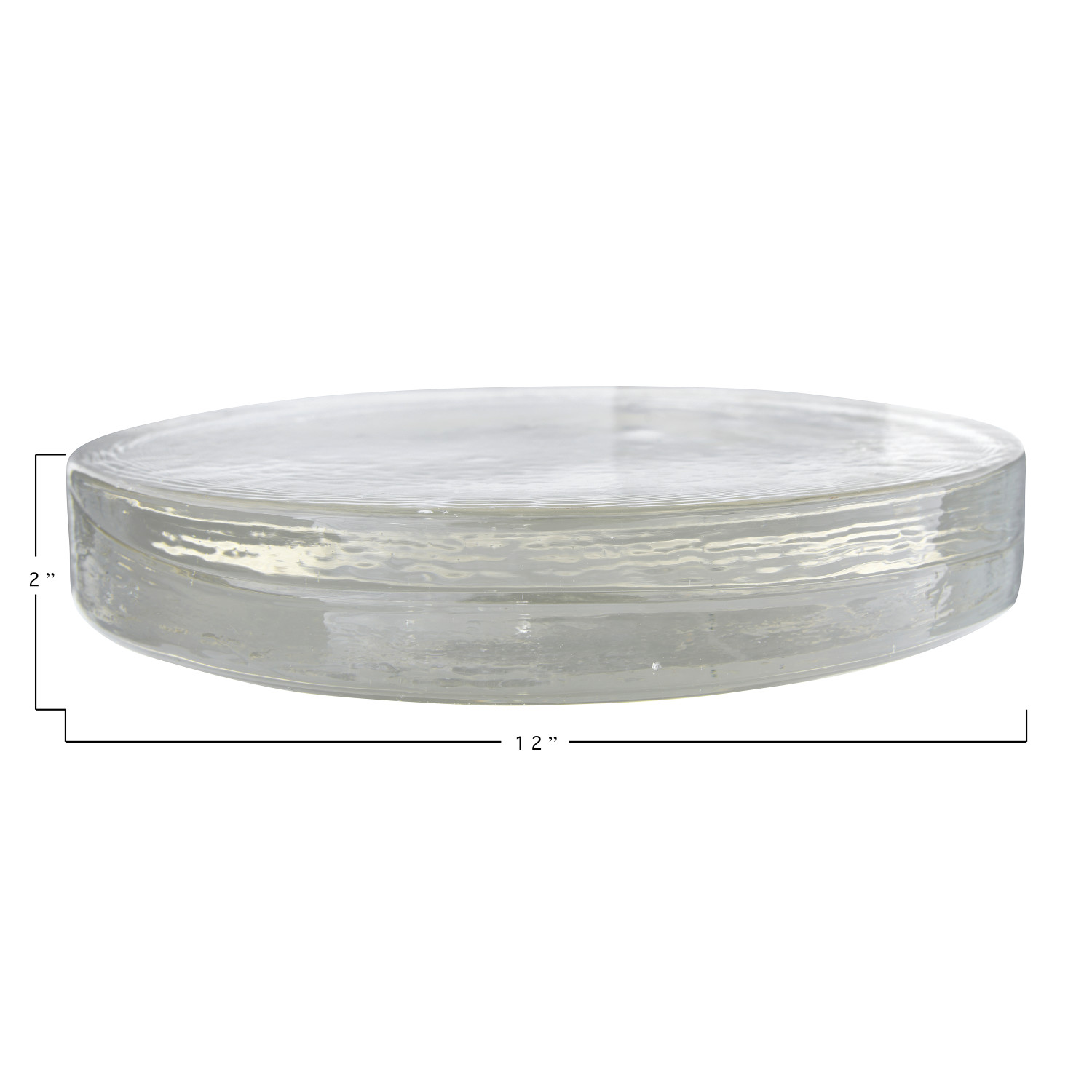 Catalog Name: 12" Round x 2"H Recycled Glass Serving Tray/Candle Plate, Clear