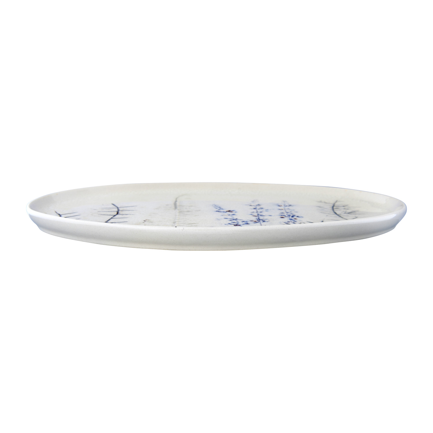 Catalog Name: 13-1/2"L x 10-1/4"W Oval Debossed Stoneware Floral Platter, Reactive Crackle Glaze (Each One Will Vary)