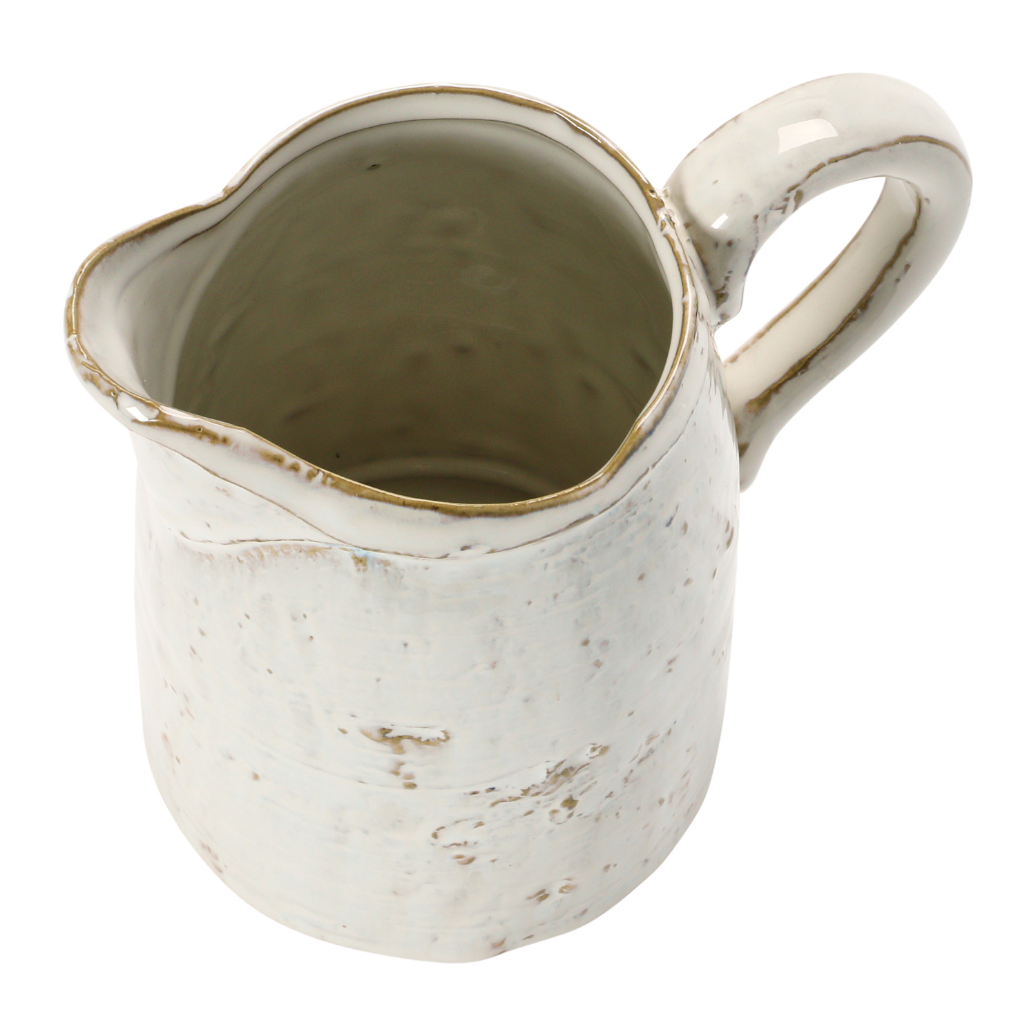 Catalog Name: 6-3/4"L x 4"W x 6"H 28 oz. Stoneware Pitcher/Vase, Reactive Glaze, White (Each One Will Vary)