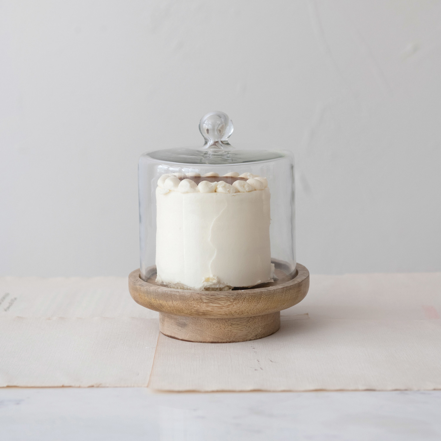 Glass Cloche w/ Footed Mango Wood Base, Set of 2