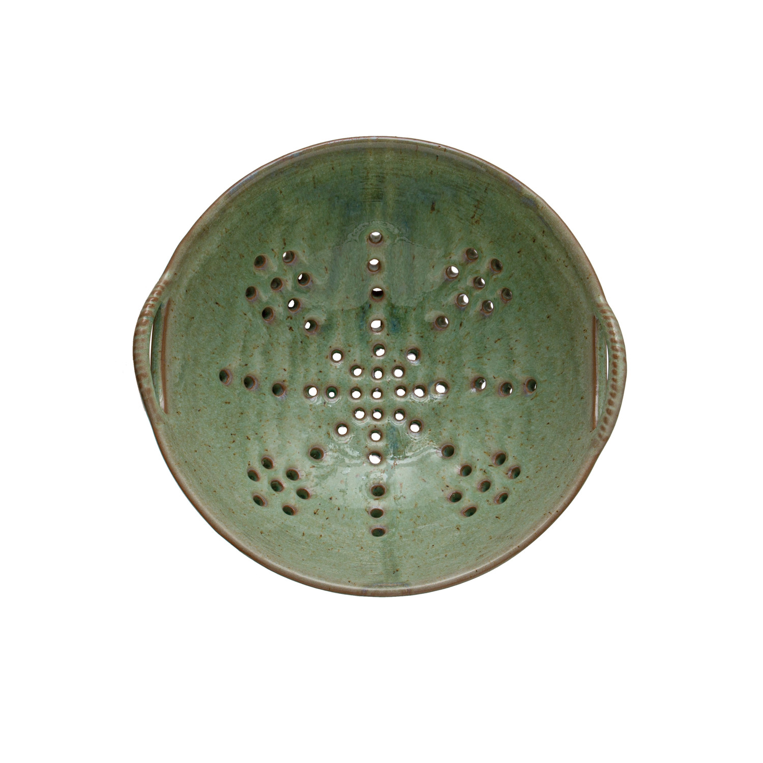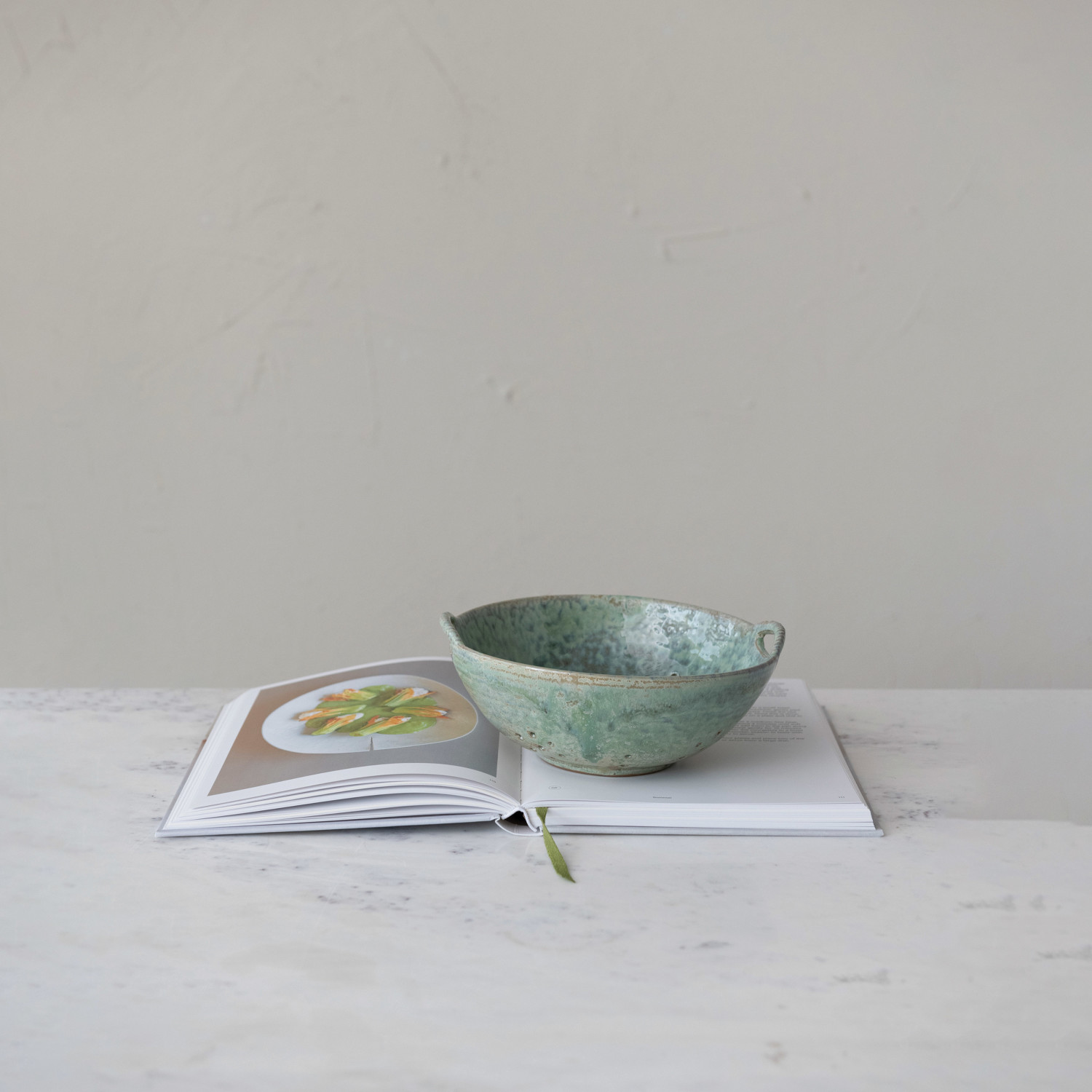 Stoneware Berry Bowl w/ Handles, Aqua (Each One Will Vary)