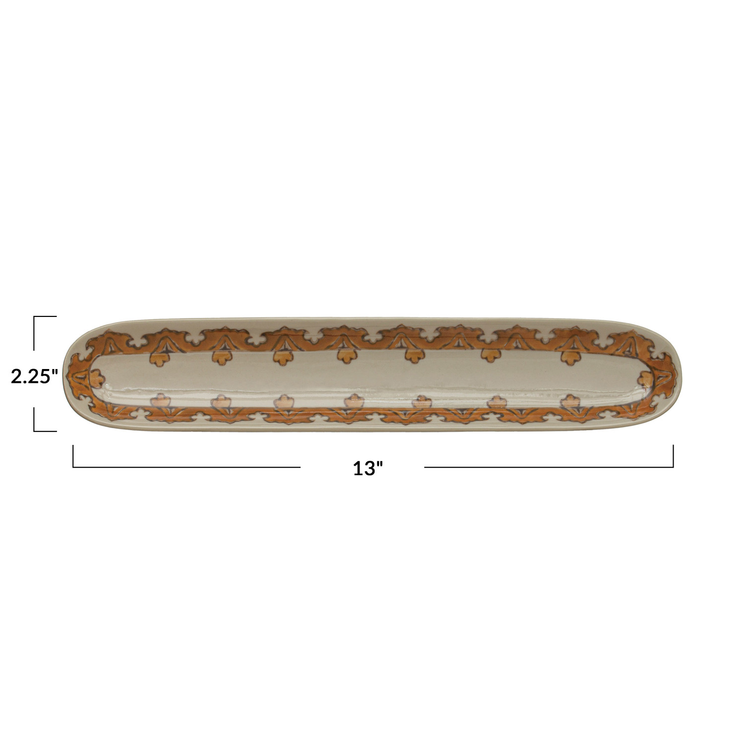 Oval Hand-Painted Stoneware Tray w/ Pattern
