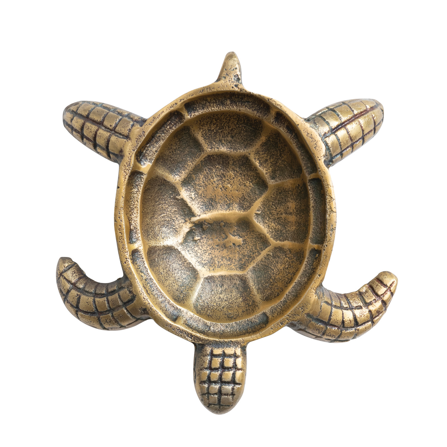 Catalog Name: 8-1/2"L x 8-3/4"W x 1-1/2"H Cast Aluminum Tortoise Shaped Dish, Antique Brass Finish