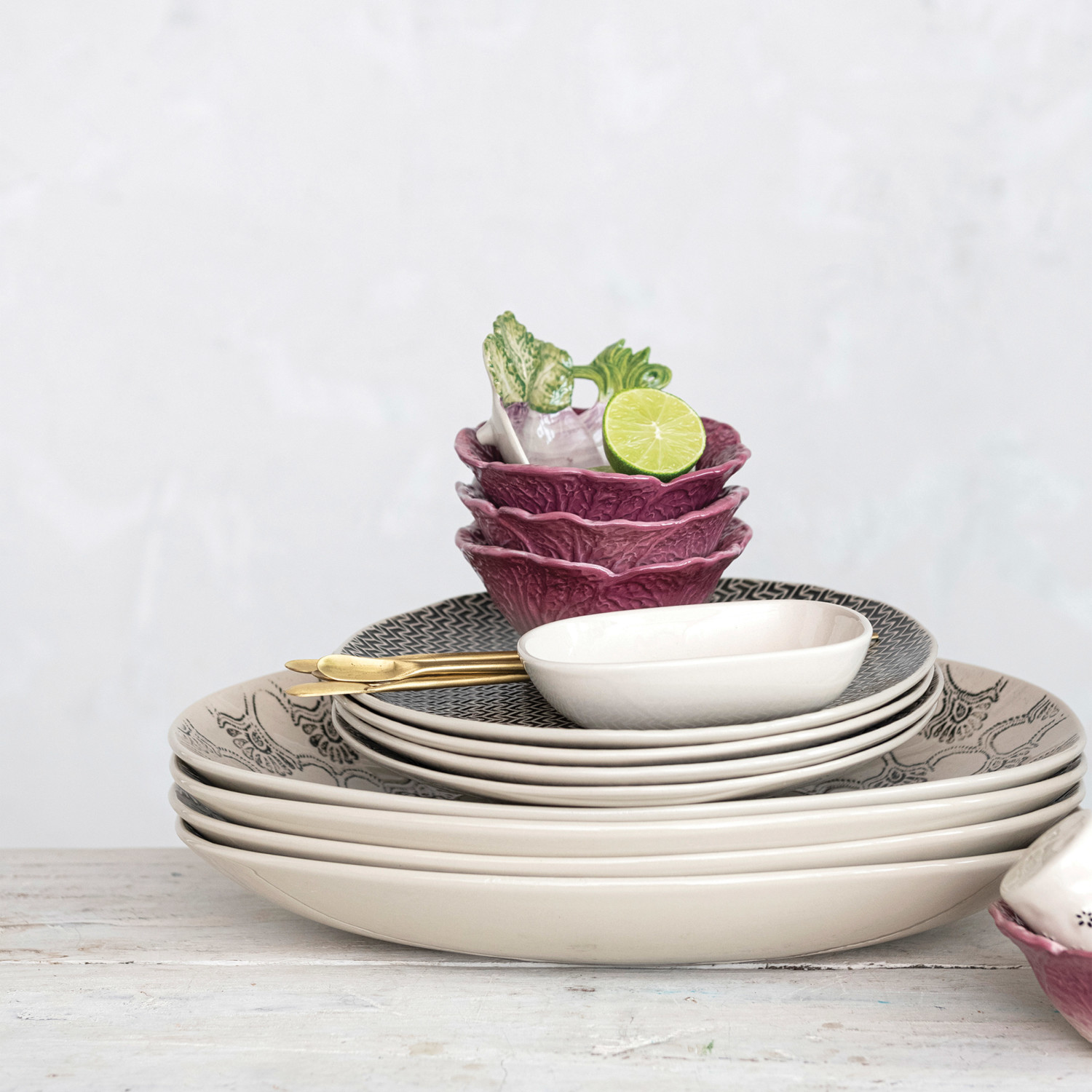 Hand-Painted Stoneware Dish w/ Embossed Flowers