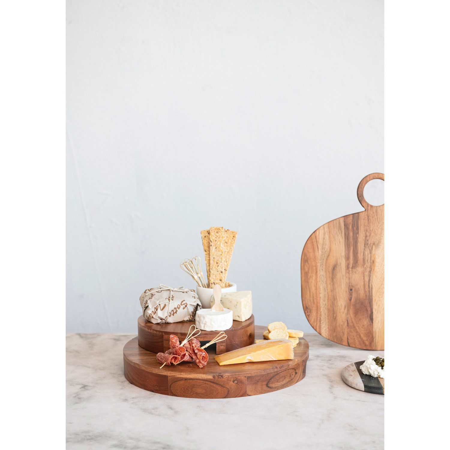 This natural acacia wood cake pedestal is a wonderful way to add some height and charm to the home. The pedestal is made of acacia wood with a natural finish and a smooth surface. The pedestal has a round shape that is ideal for elevating or displaying cakes, pies, or other desserts that suit any farmhouse, lodge, Scandinavian, cabin, or French country style home. The pedestal measures 10 inches in diameter and 2 inches in height and can fit any space. This natural acacia wood cake pedestal is a versatile and beautiful piece that will make the desserts more appealing and inviting.