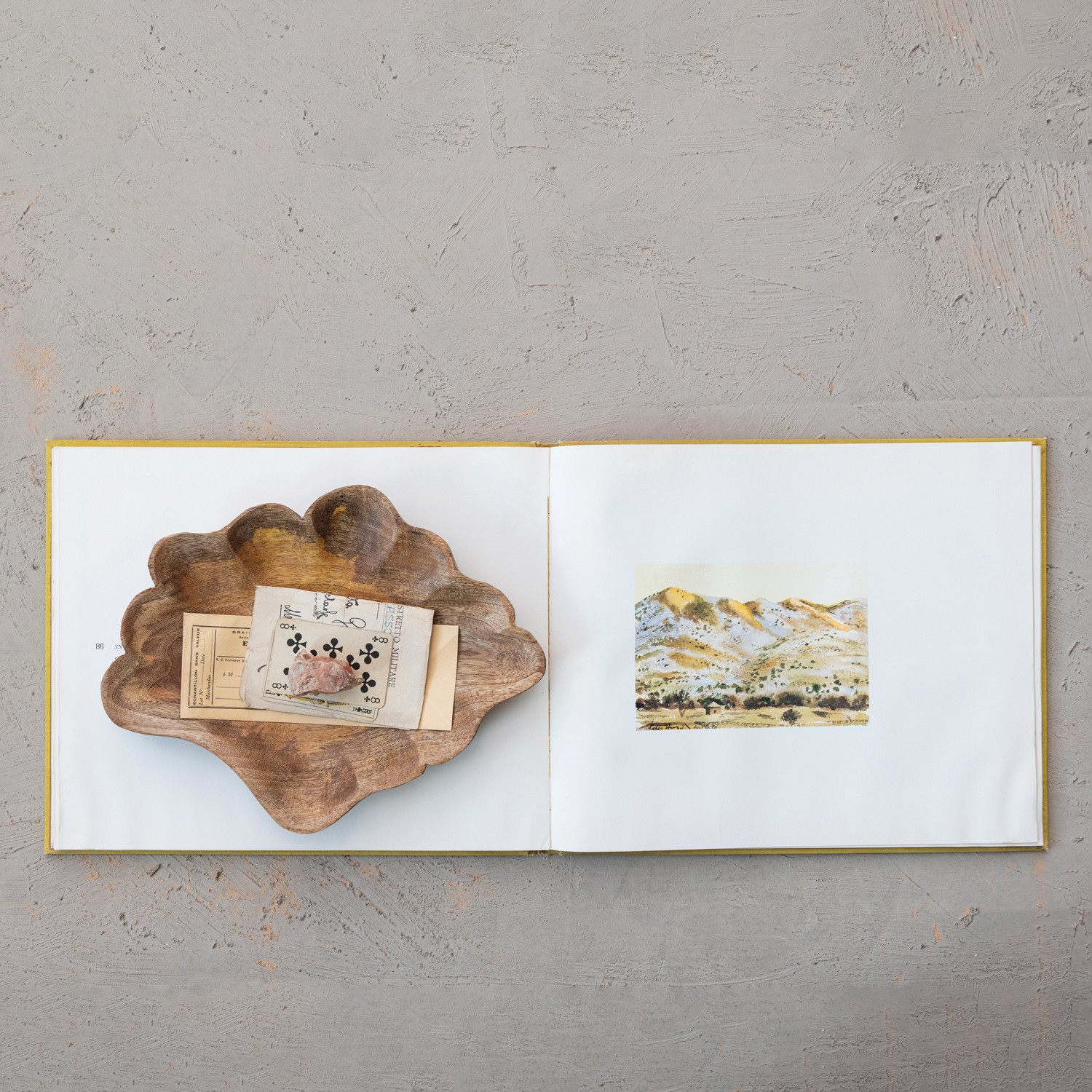 This hand-carved mango wood scalloped platter is a charming and practical serveware piece that can enhance any dining or living space. The platter features a scalloped edge that adds a touch of whimsy and elegance. The natural finish showcases the rich grain and color of the mango wood, while also being easy to clean and maintain. The mango wood material is hand-carved by skilled artisans, making each platter one-of-a-kind and environmentally friendly. The platter can be used as a platter to serve food such as cheese, bread, fruits, or desserts, or as a tray to display items such as candles, plants, or ornaments. The platter can also be hung on the wall as a decor piece that adds some texture and warmth to any room. The platter measures 12.25 inches in length, 9 inches in width, and 1.5 inches in height. It is a perfect choice for anyone who loves farmhouse, boho, French country, or botanical style.