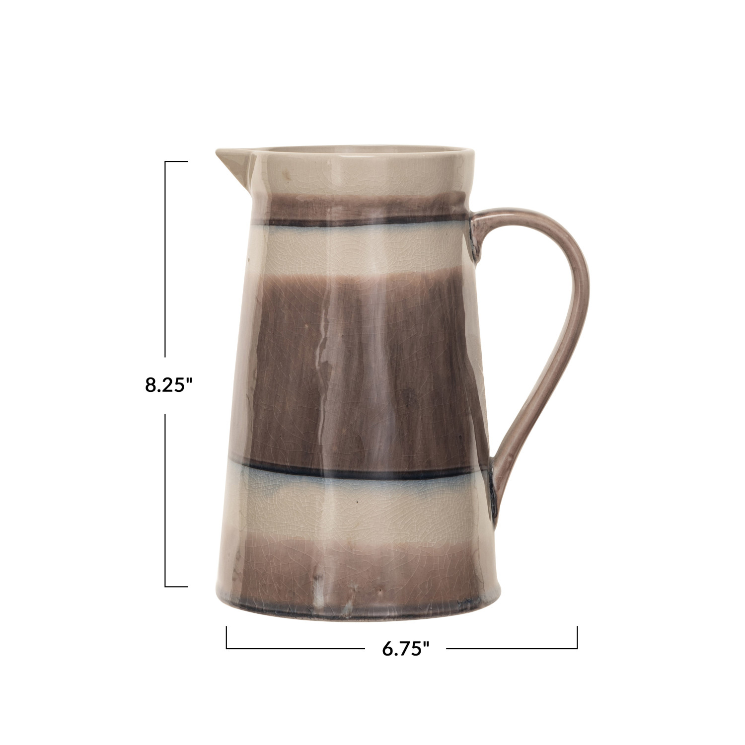 Catalog Name: 6-3/4"L x 5-1/4"W x 8-1/4"H 2 Quart Stoneware Pitcher w/ Stripes, Reactive Crackle Glaze, Aubergine & Cream Color (Each One Will Vary)